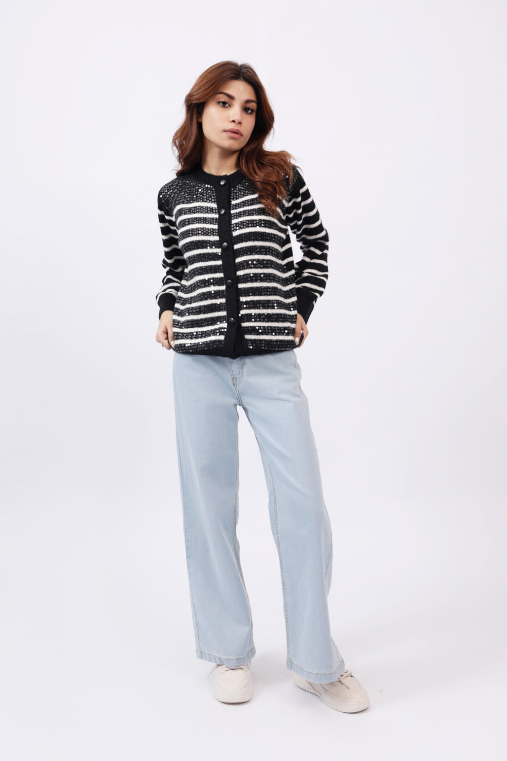 TEXTURED CARDIGAN WITH TURN UP SLEEVE