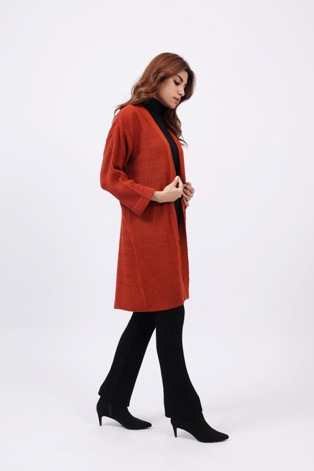 TEXTURED CARDIGAN WITH TURN UP SLEEVE