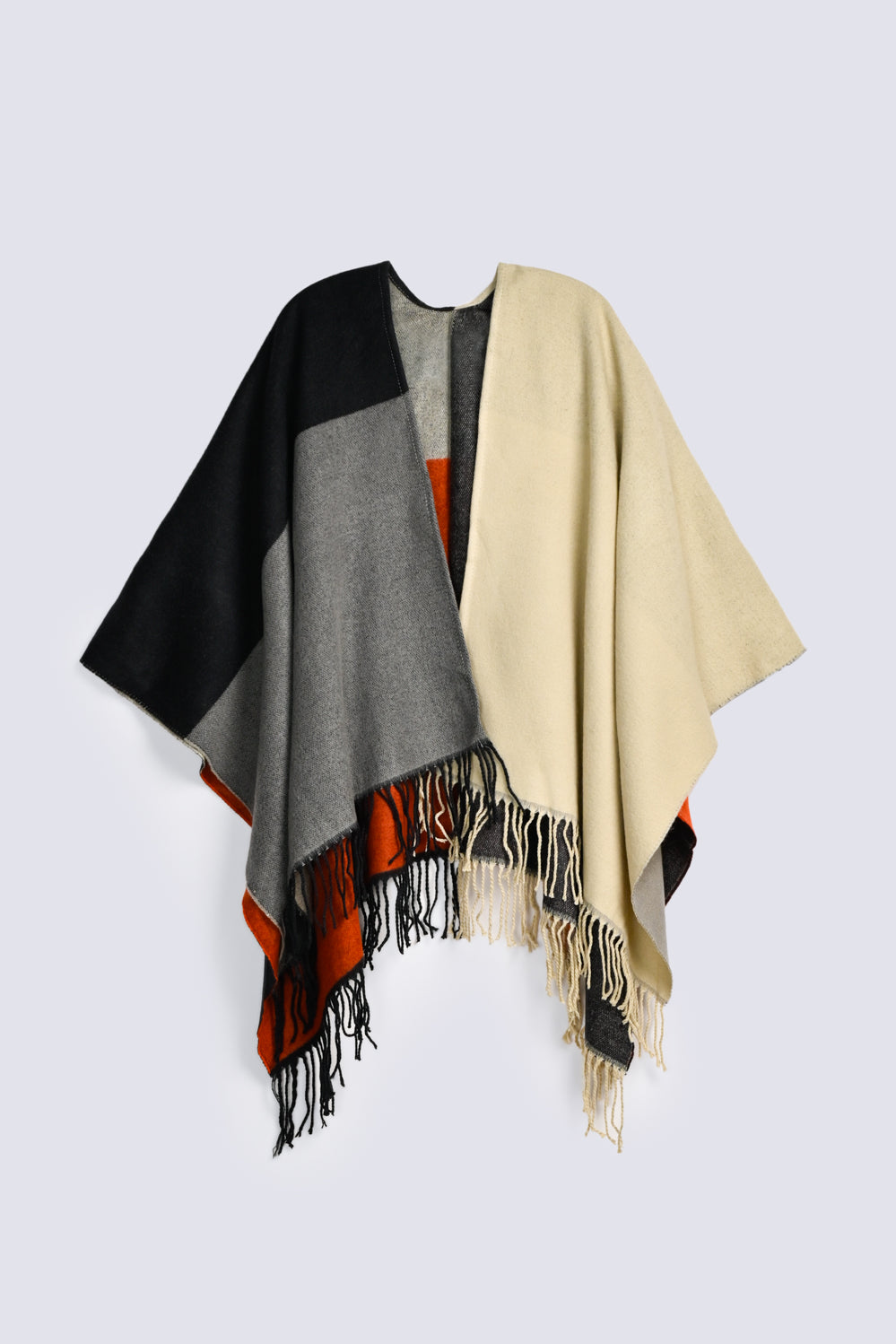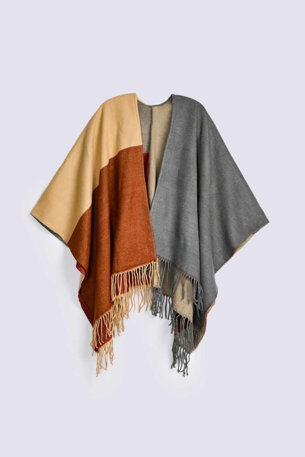 REVERSIBLE COLOUR BLOCK CAPE SHAWL