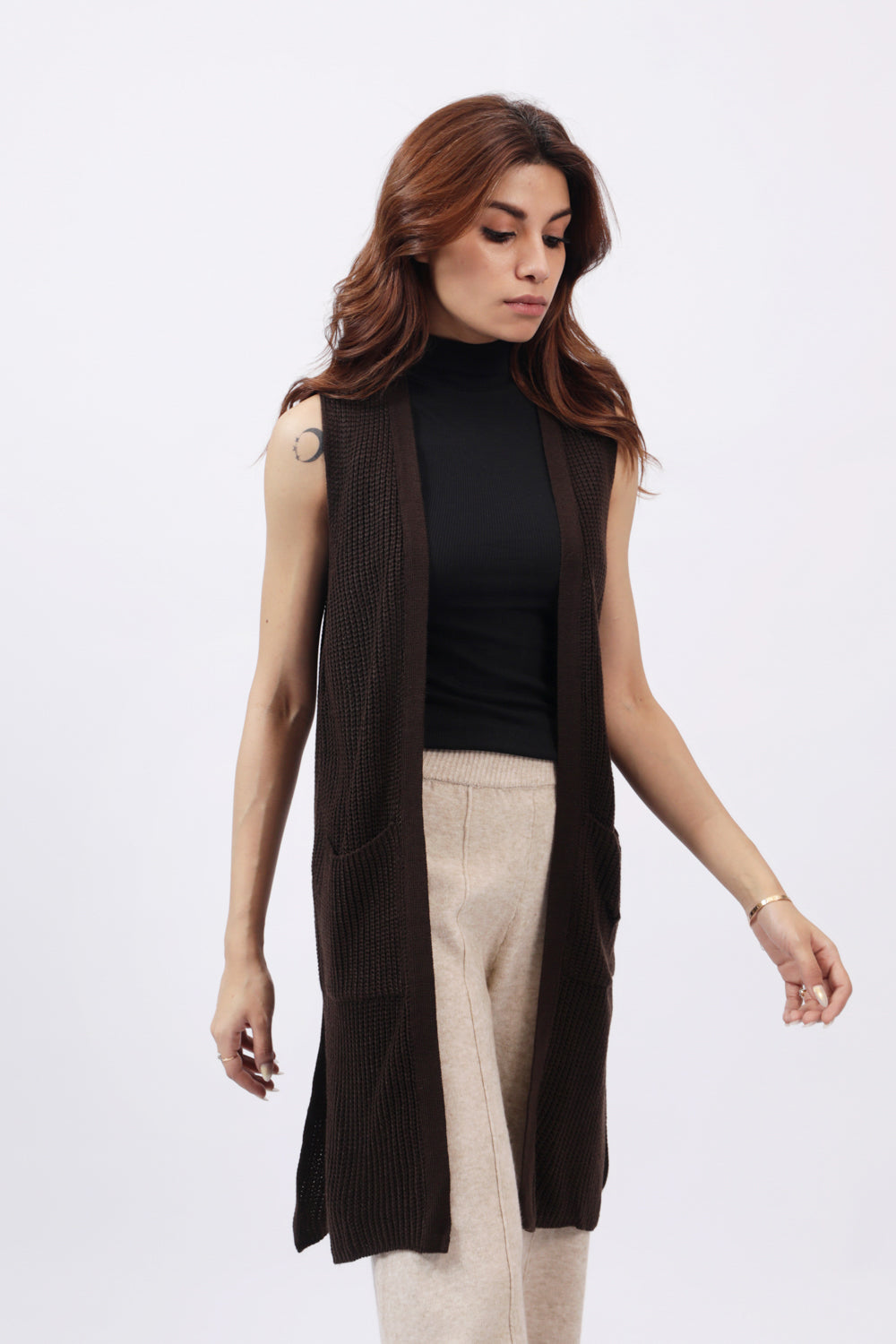 LONG SLEEVELESS CARDIGAN