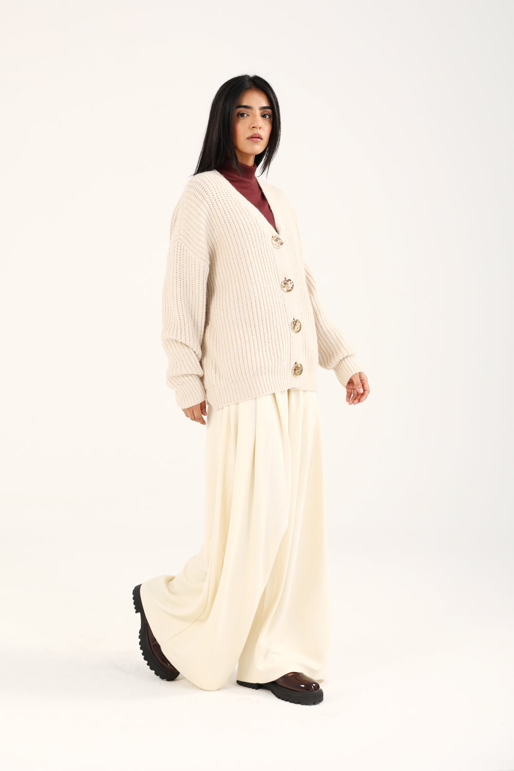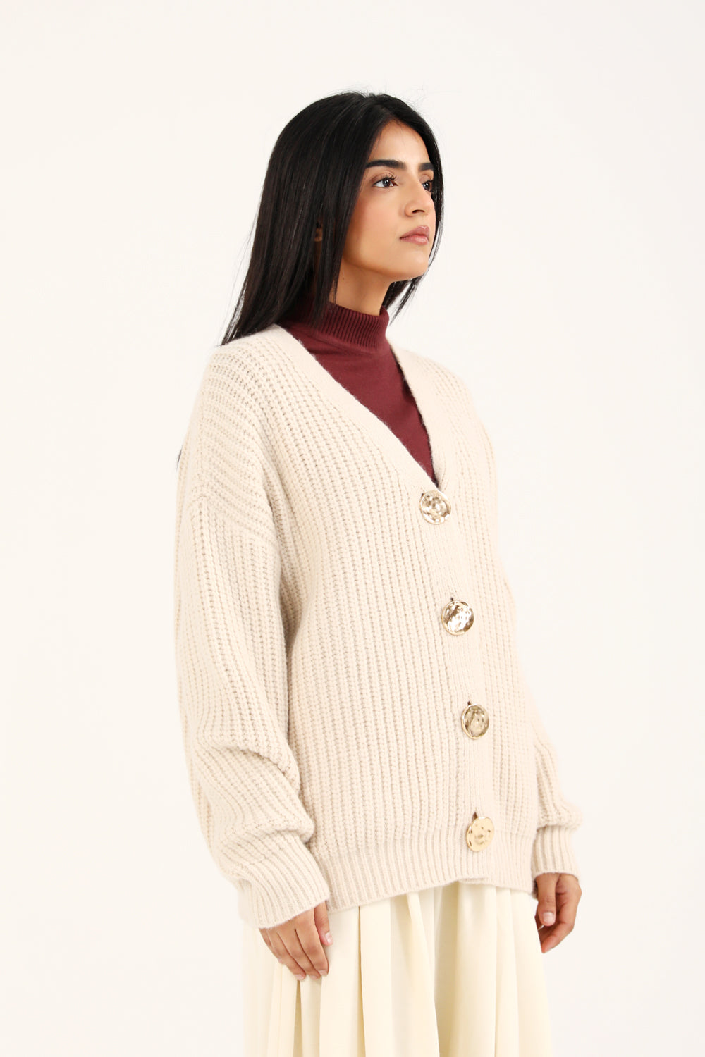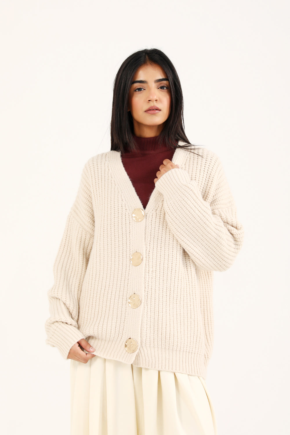 CASHMERE HANDFEEL CHUNKY KNIT CARDIGAN
