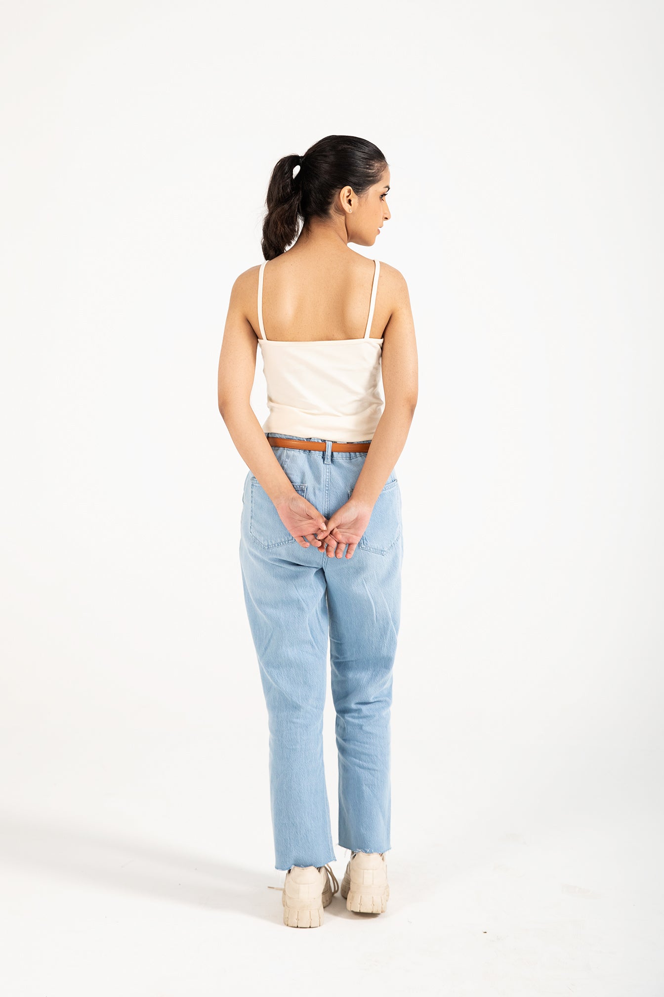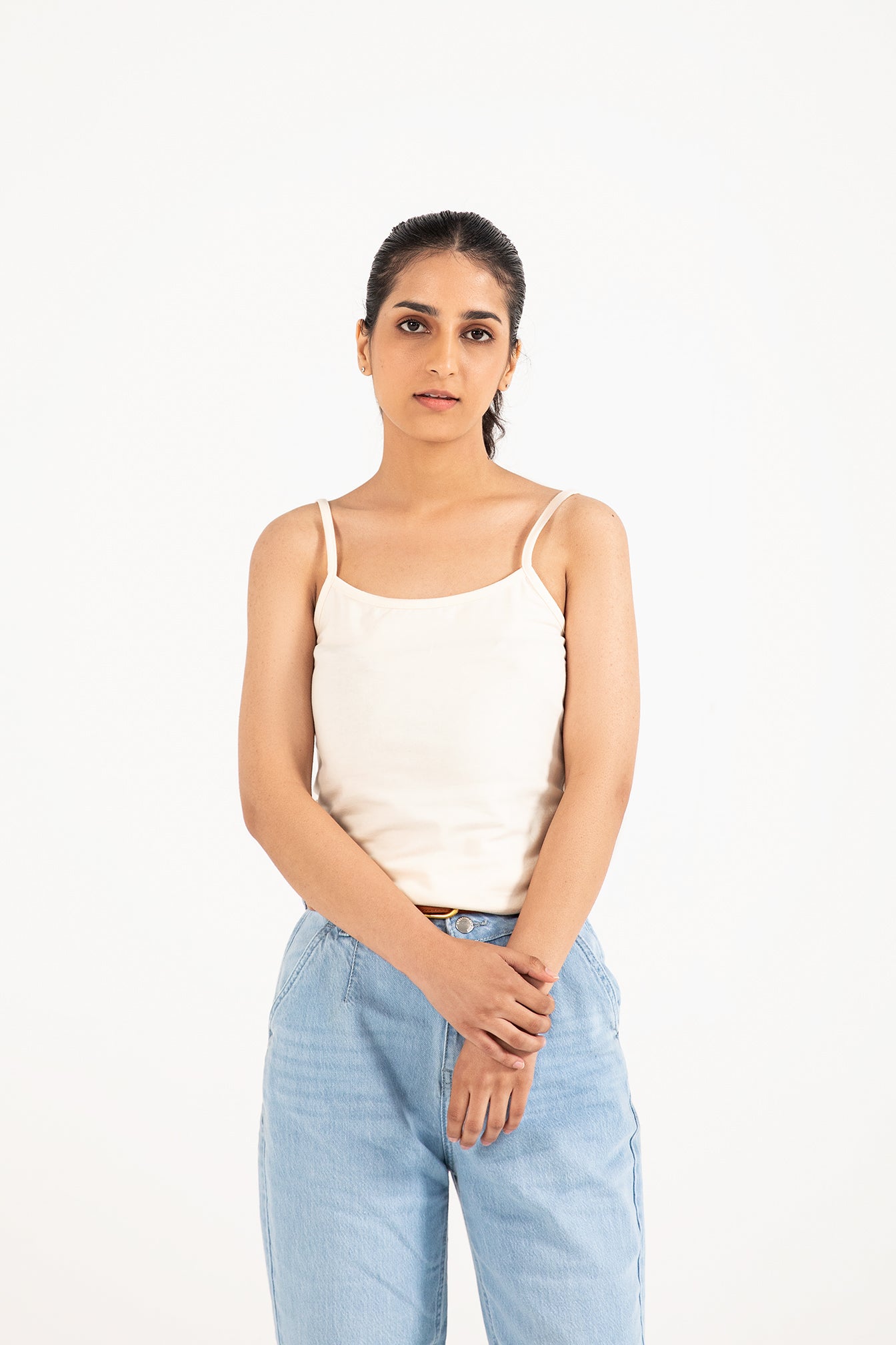 White camisole in a cotton synthetic stretch blend, kept plain and versatile.