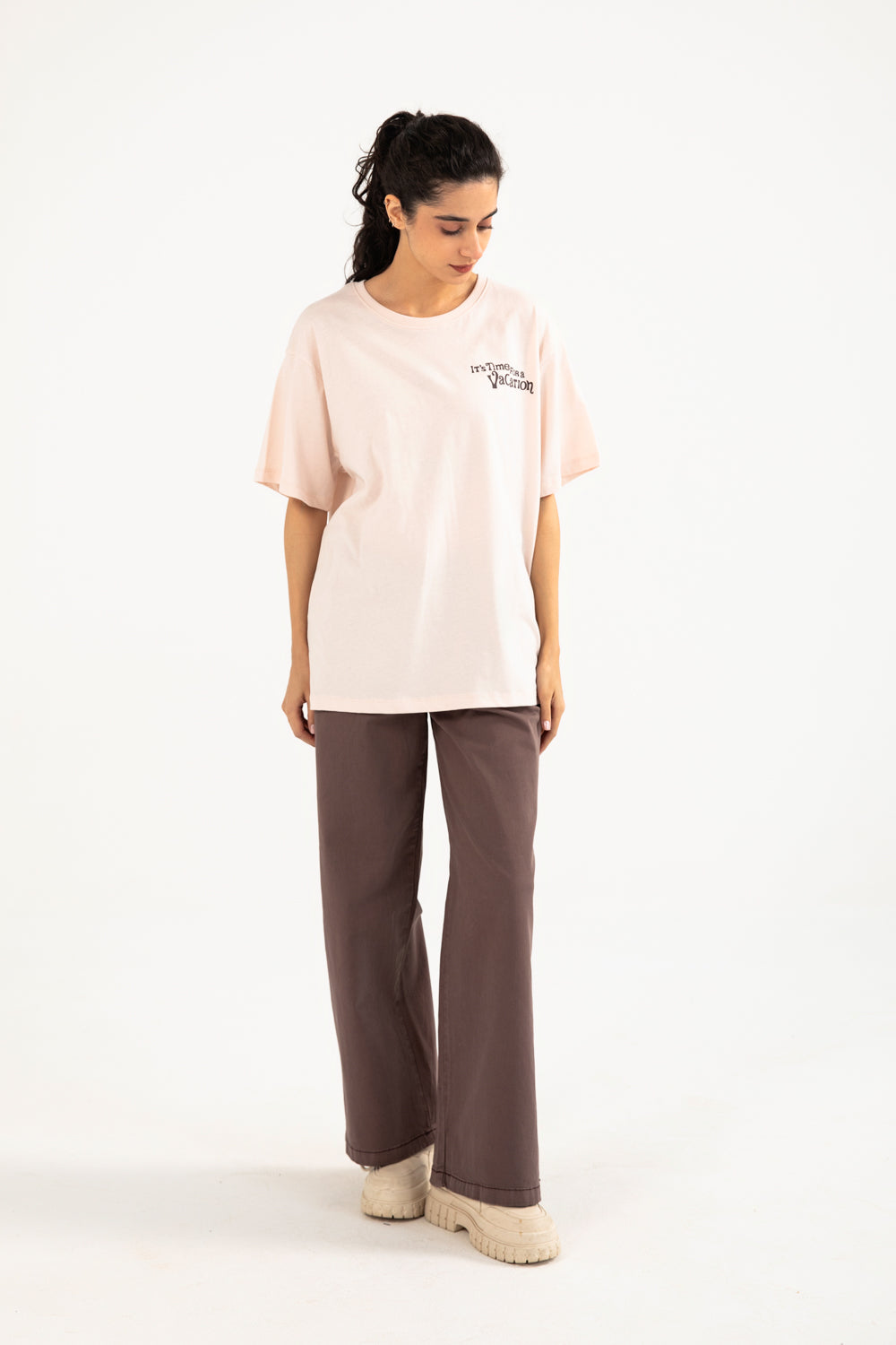 Graphic oversize tee in light pink featuring a bold back print with a subtle front design for balance.