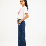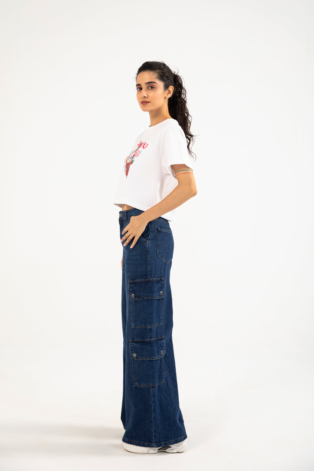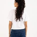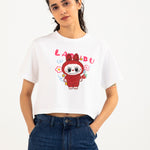 A cropped cotton tee with a playful Labubu print on the front, designed in a lightly textured finish.