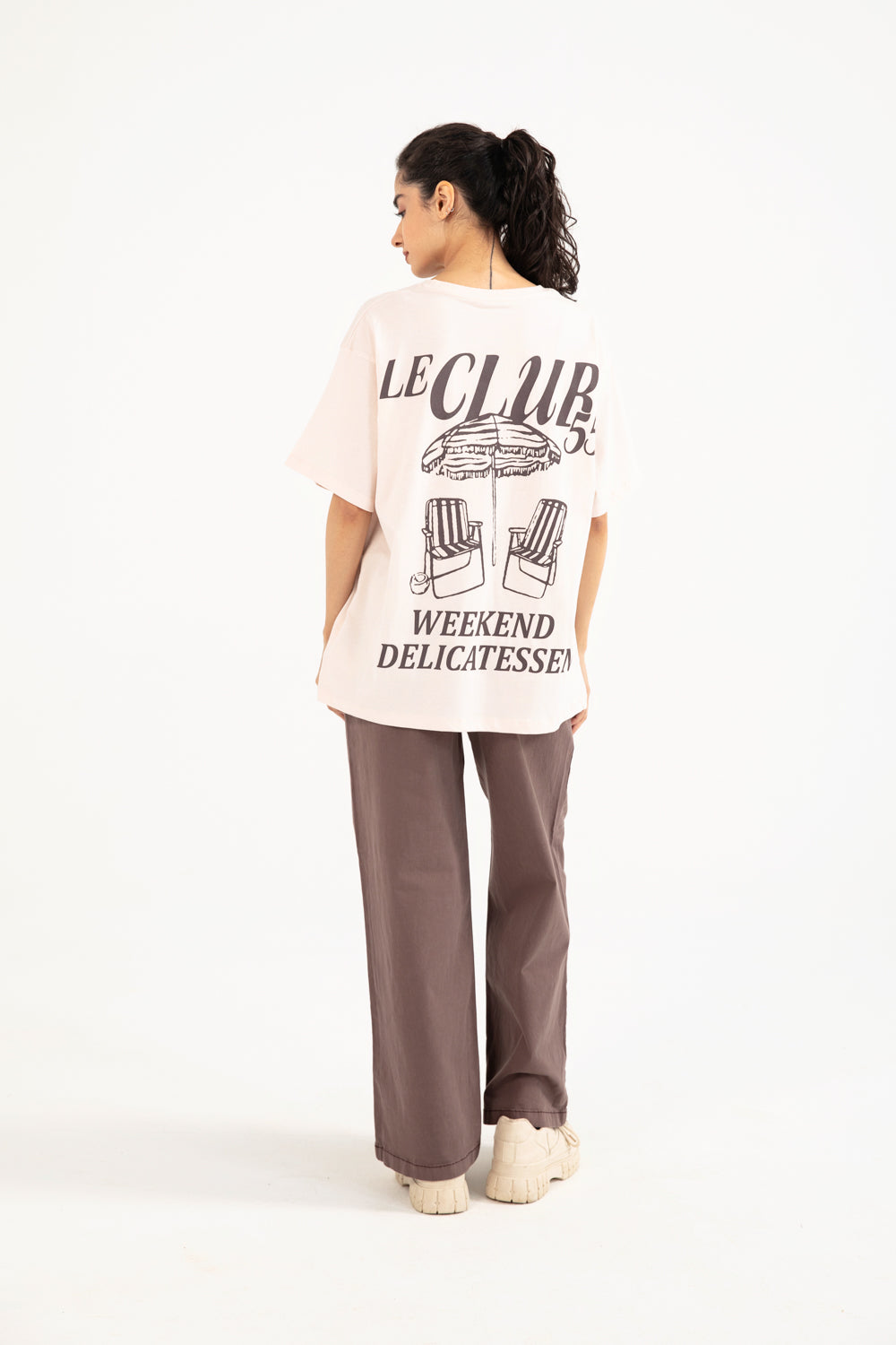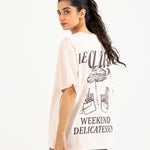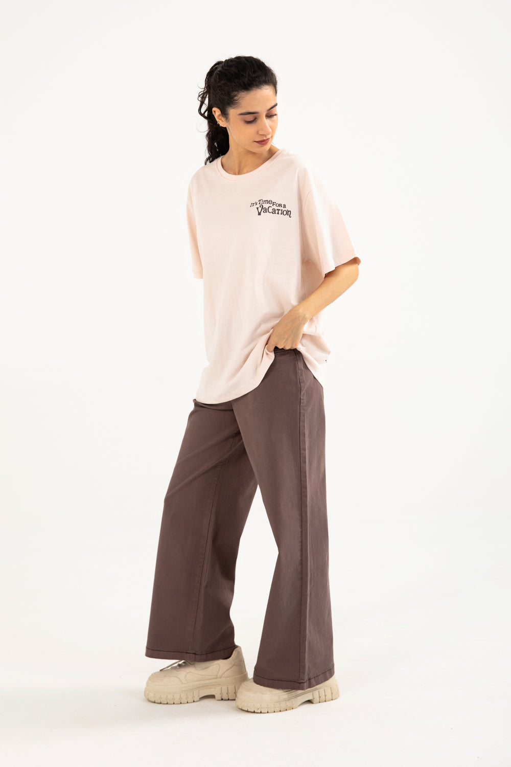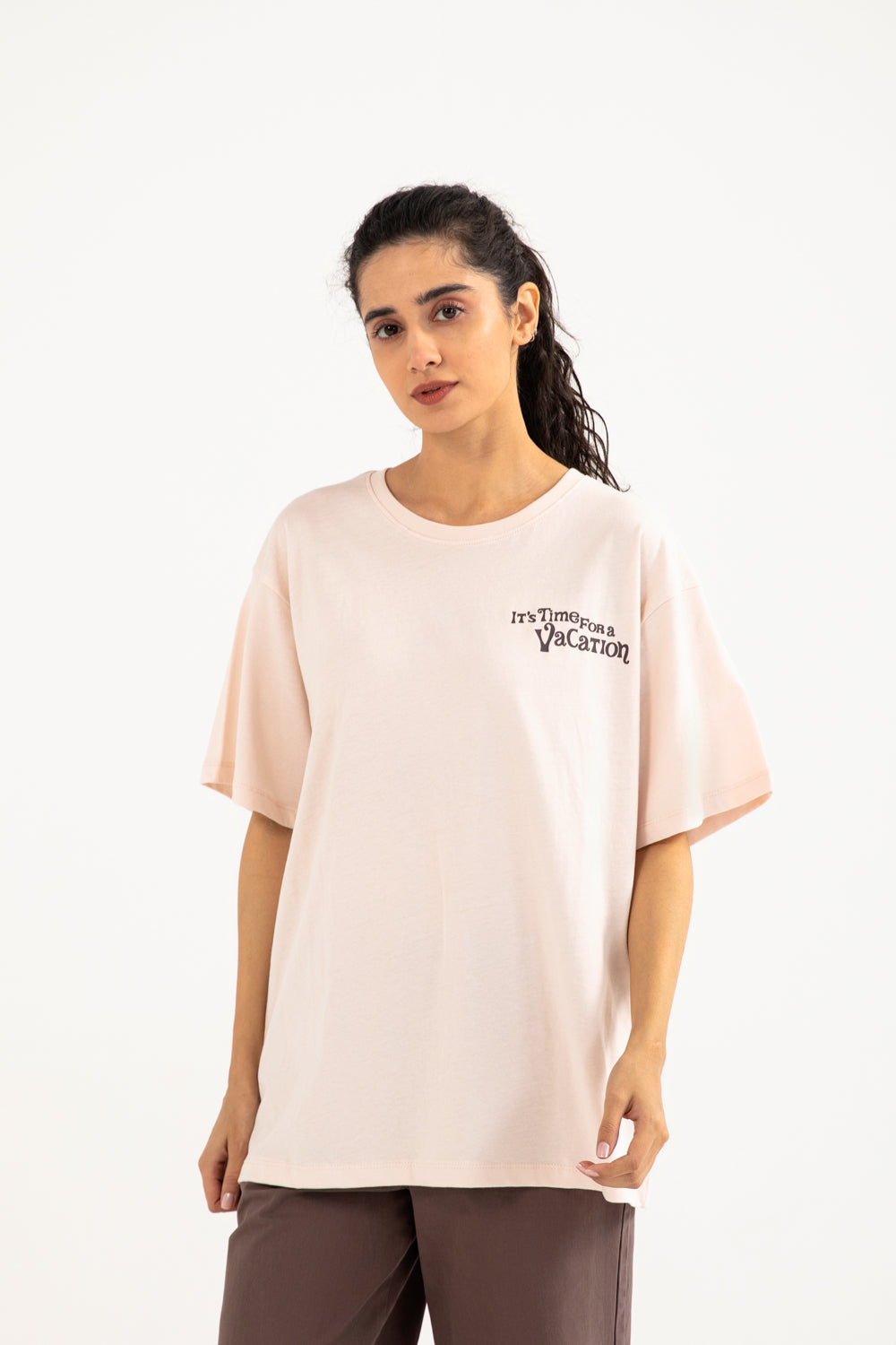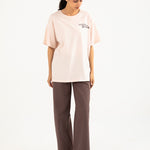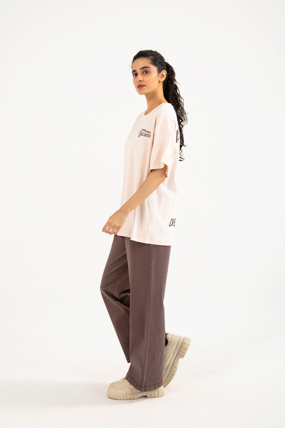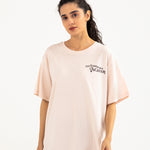 Graphic oversize tee in light pink featuring a bold back print with a subtle front design for balance.