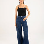 Black camisole in a cotton synthetic stretch blend, kept plain and versatile.
