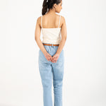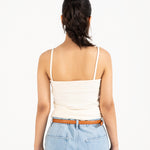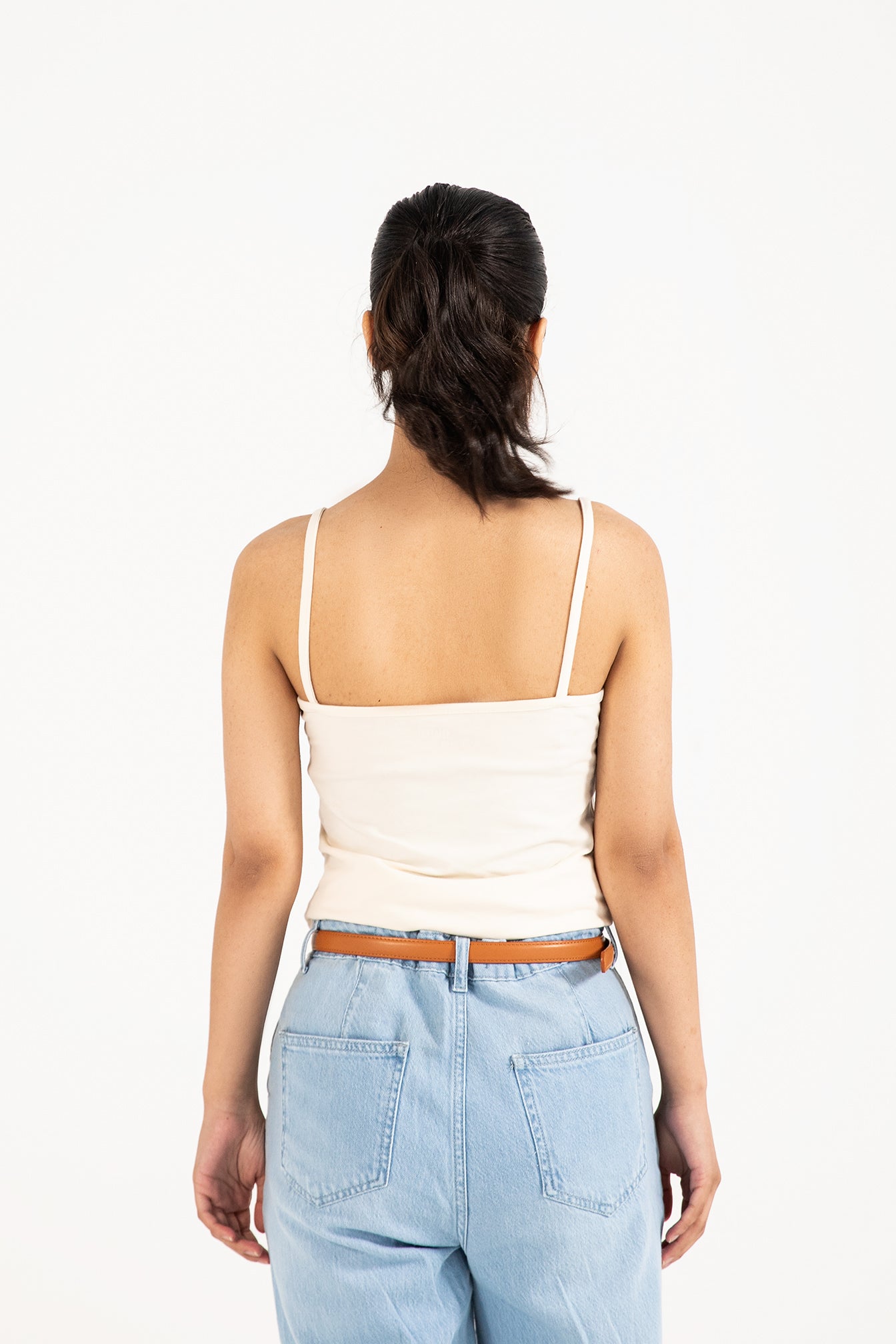White camisole in a cotton synthetic stretch blend, kept plain and versatile.