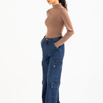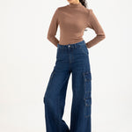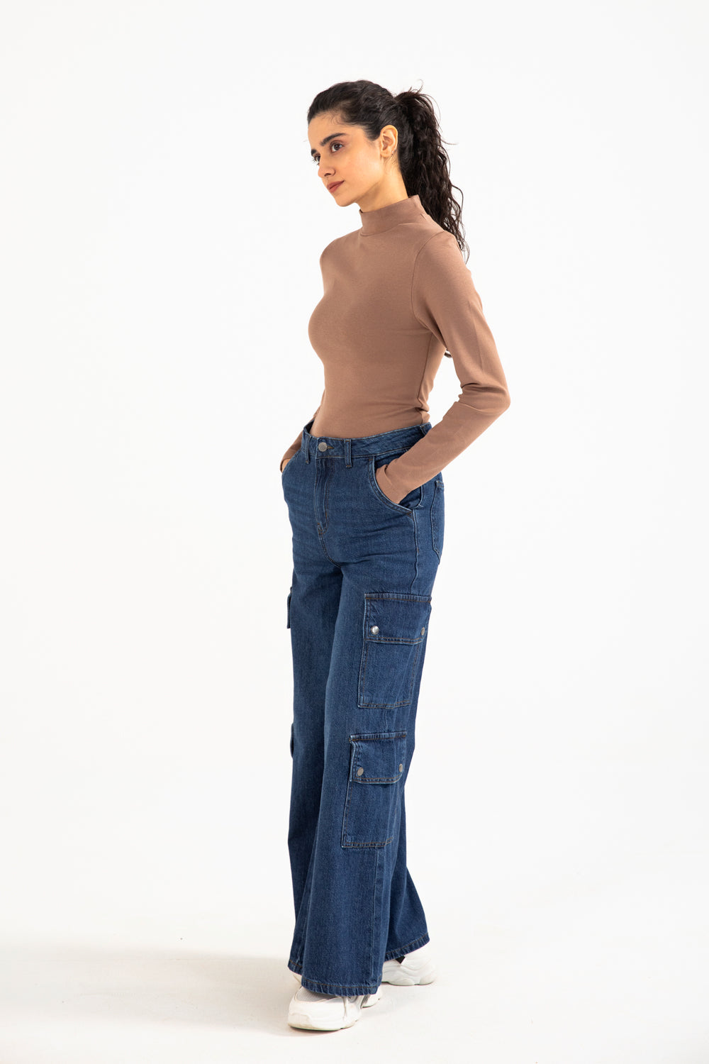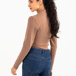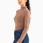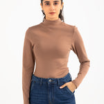 Ribbed highneck top in brown crafted from cotton with a sleek body hugging fit and full length sleeves for a clean, minimal look.