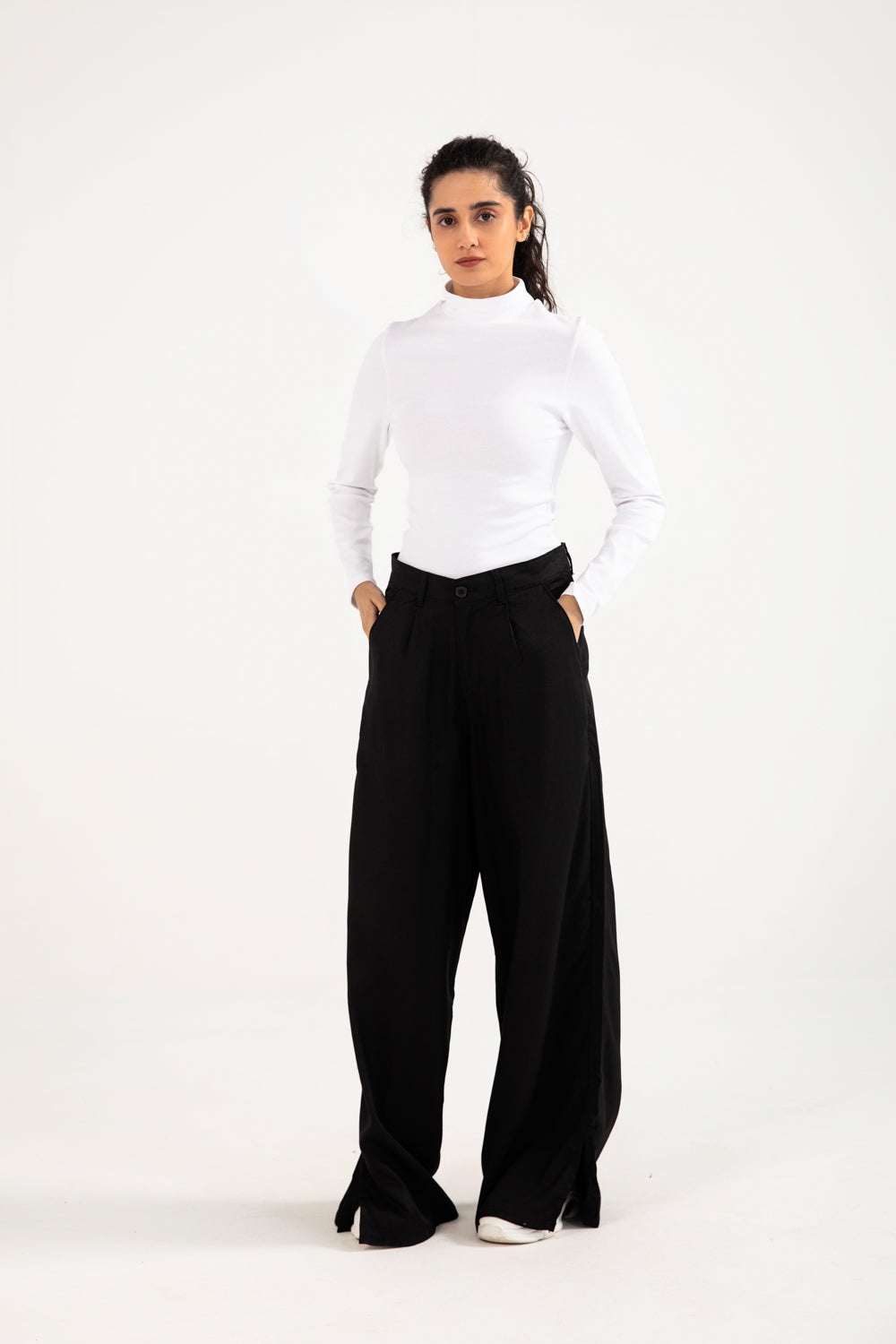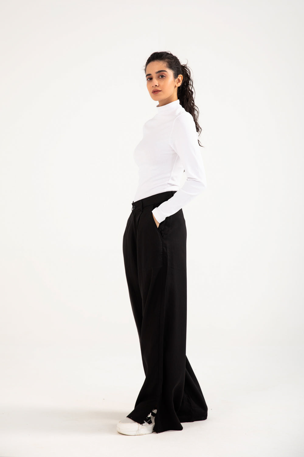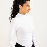 Ribbed highneck top in white crafted from cotton with a sleek body hugging fit and full length sleeves for a clean, minimal look.