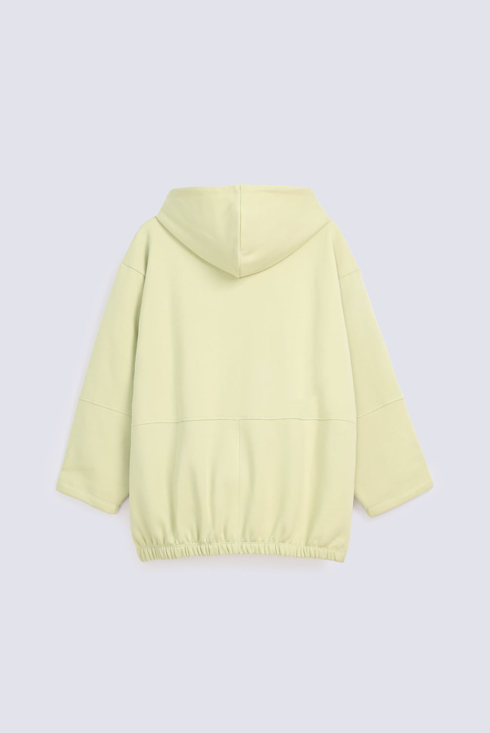Matcha graphic hoodie in light green crafted from a soft cotton blend with an elasticated hem and a front matcha print.