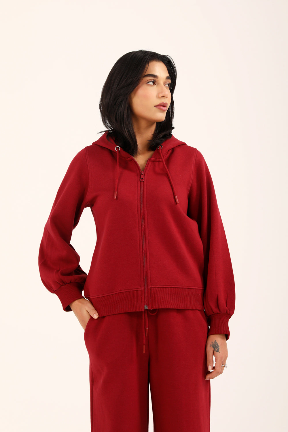 REGULAR HOODIE WITH BLOUSED SLEEVE