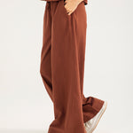 Wide leg trousers in a breathable cotton linen blend, designed with an elasticated drawstring waistband for comfort.