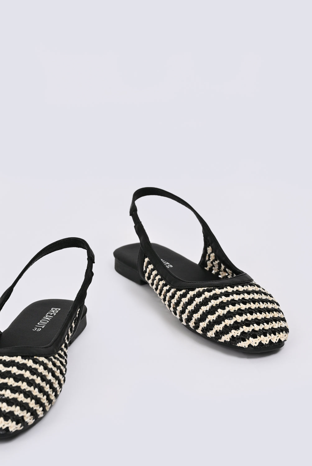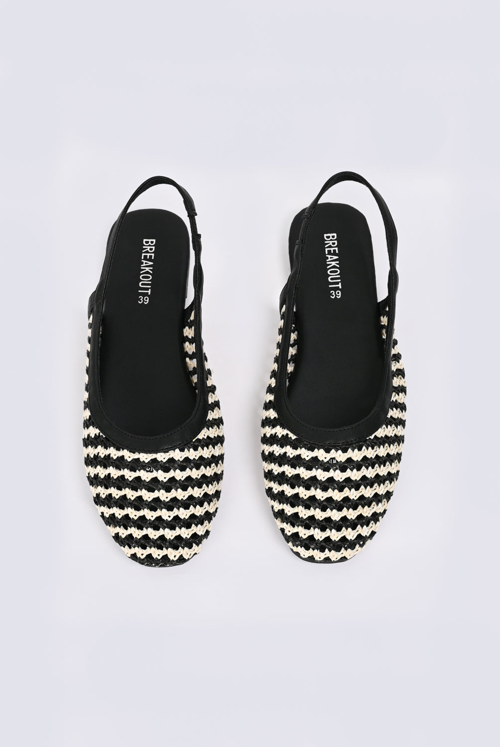 Crochet slingback in black featuring an alternating black and off white pattern.