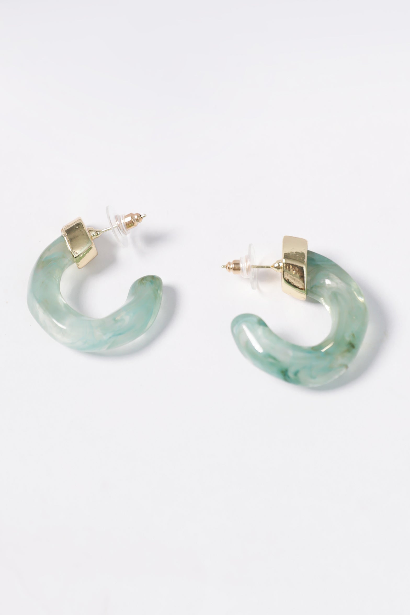 Semicircular hoop earrings in a captivating ocean blue resin, offering a cool, serene touch to your accessory collection.