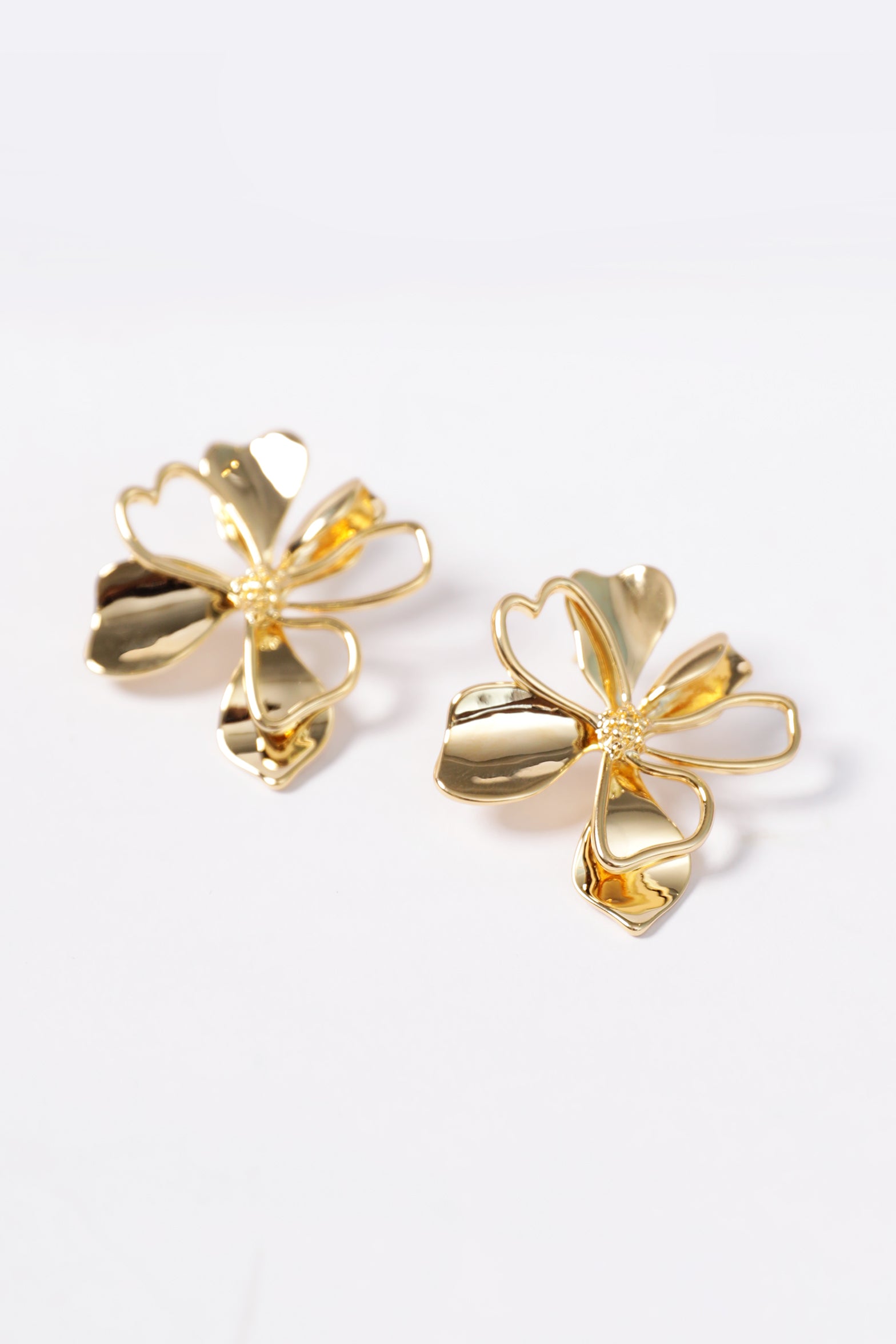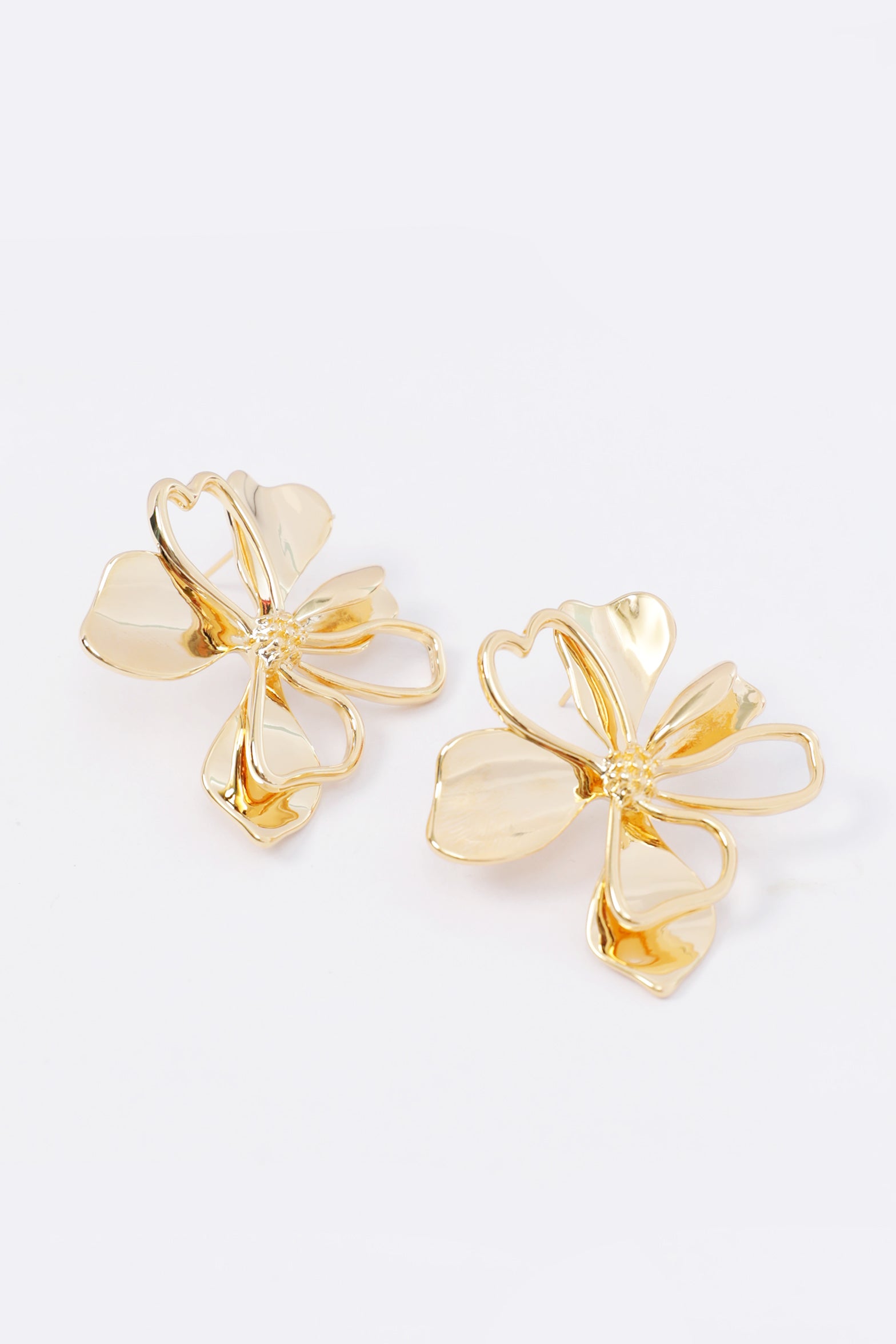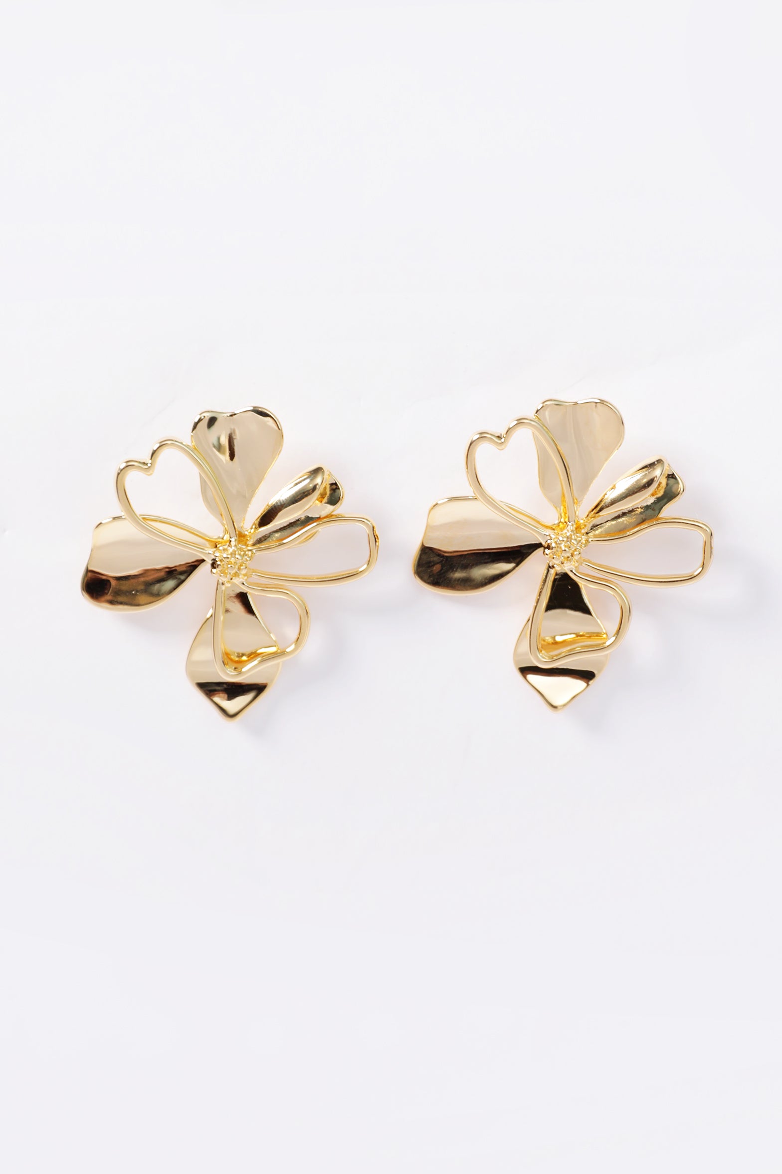 Metal flower earrings in gold, featuring delicate flower-shaped studs for a simple yet charming look.
