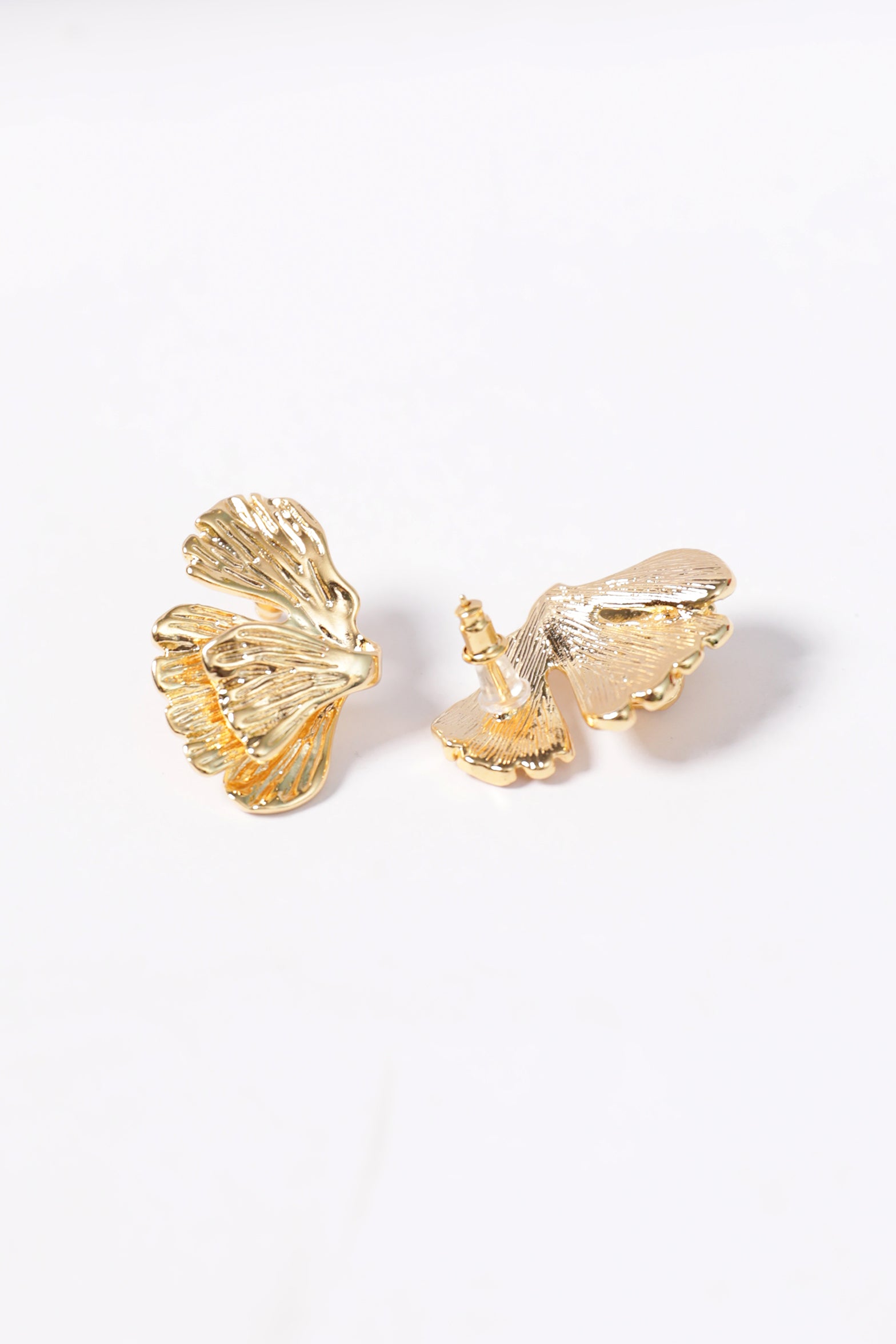 Metal earrings with a half flower petal shape, crafted in gold for a sleek and elegant look.