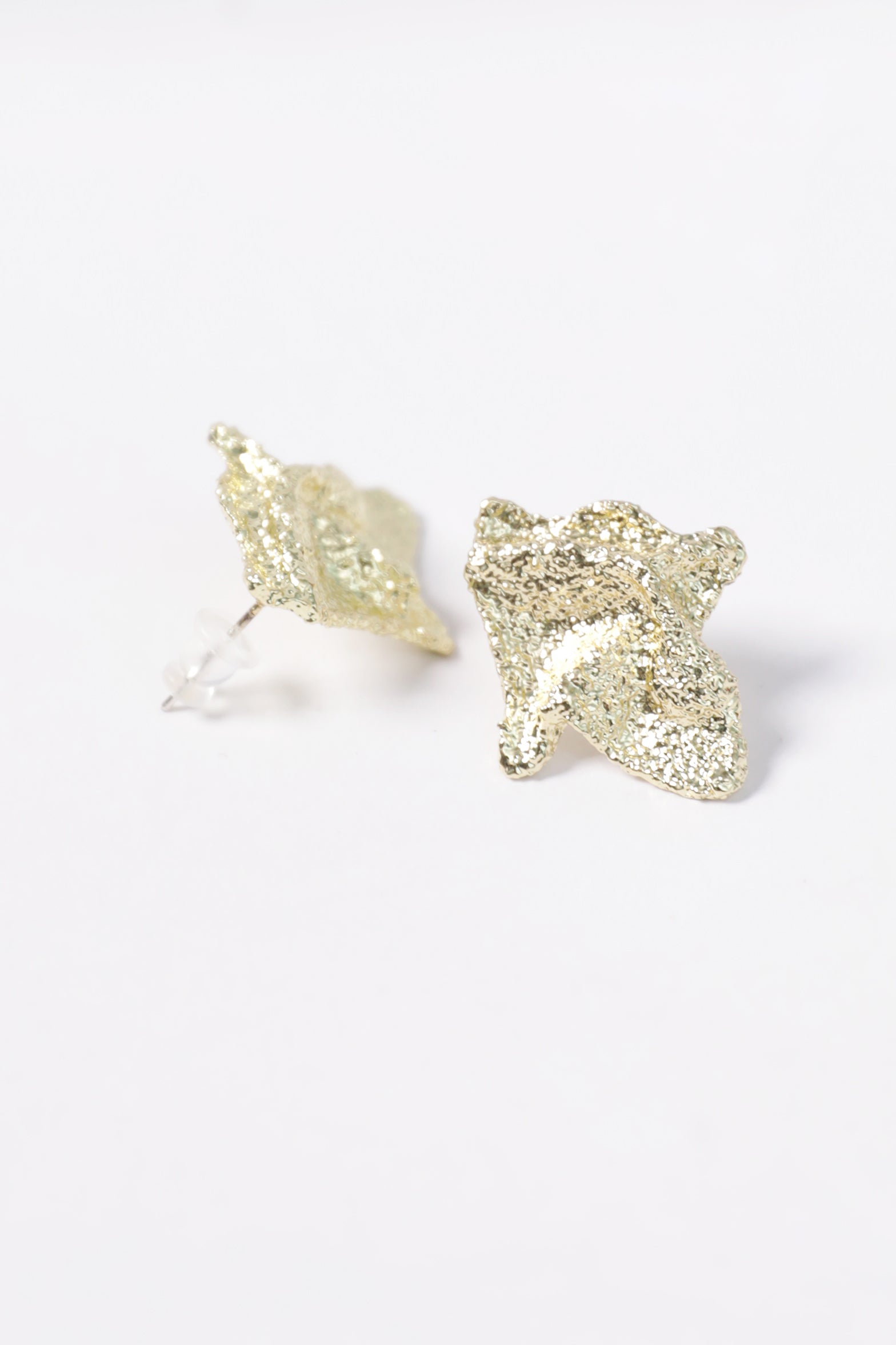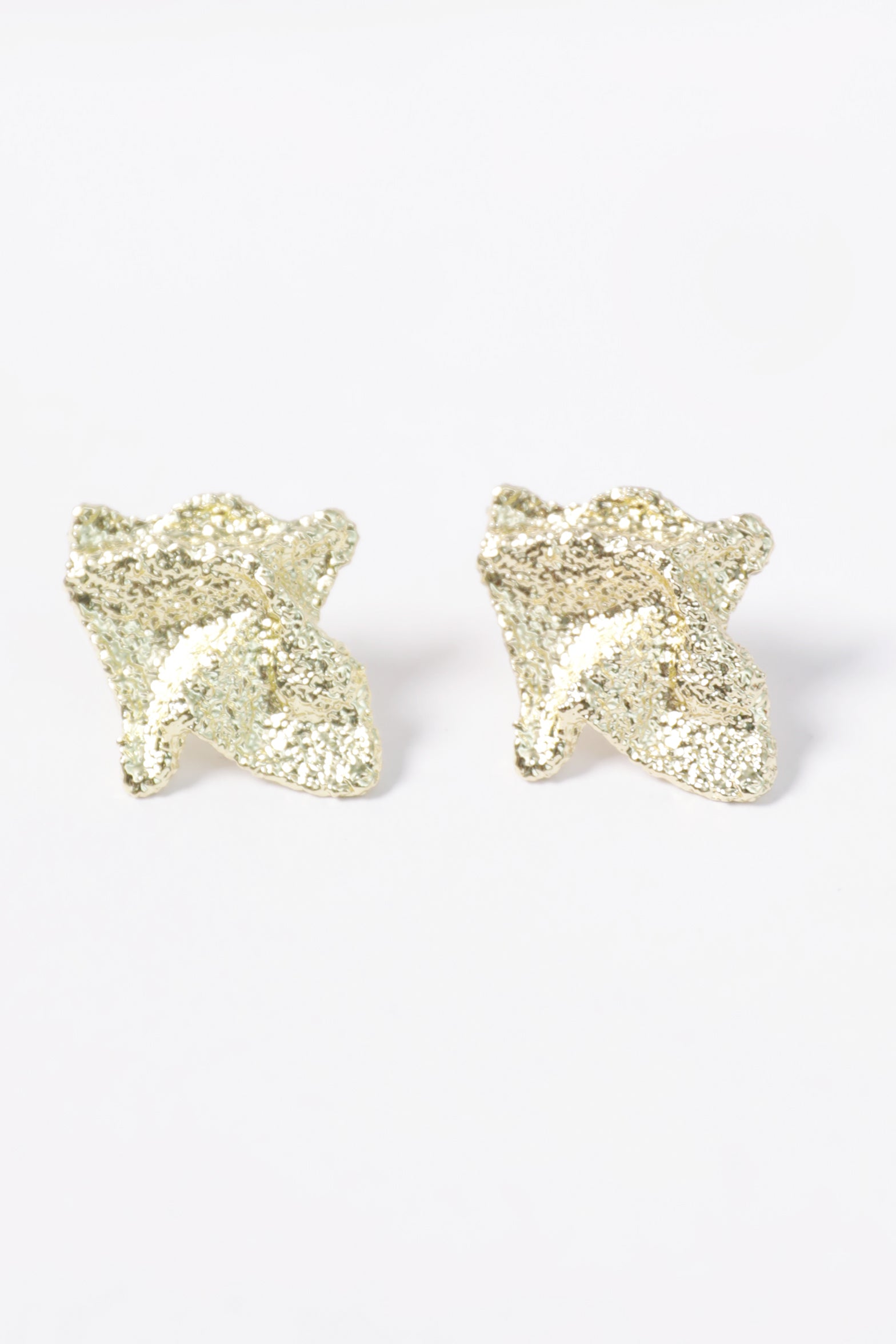 Textured metal earrings in a muted gold tone, offering a subtle yet stylish touch.