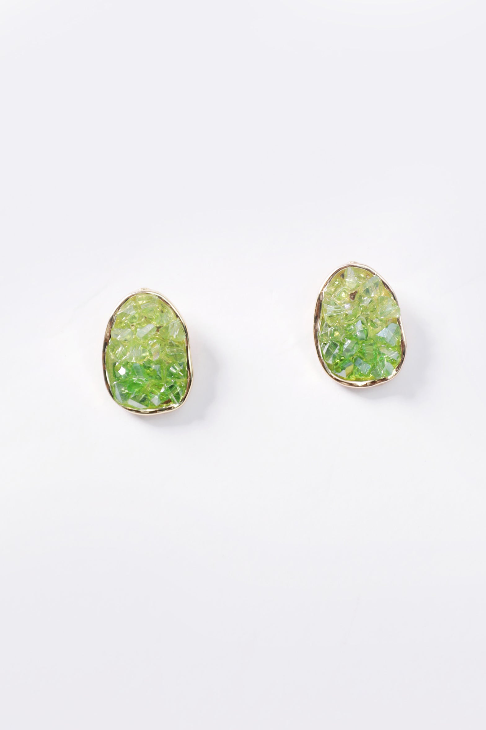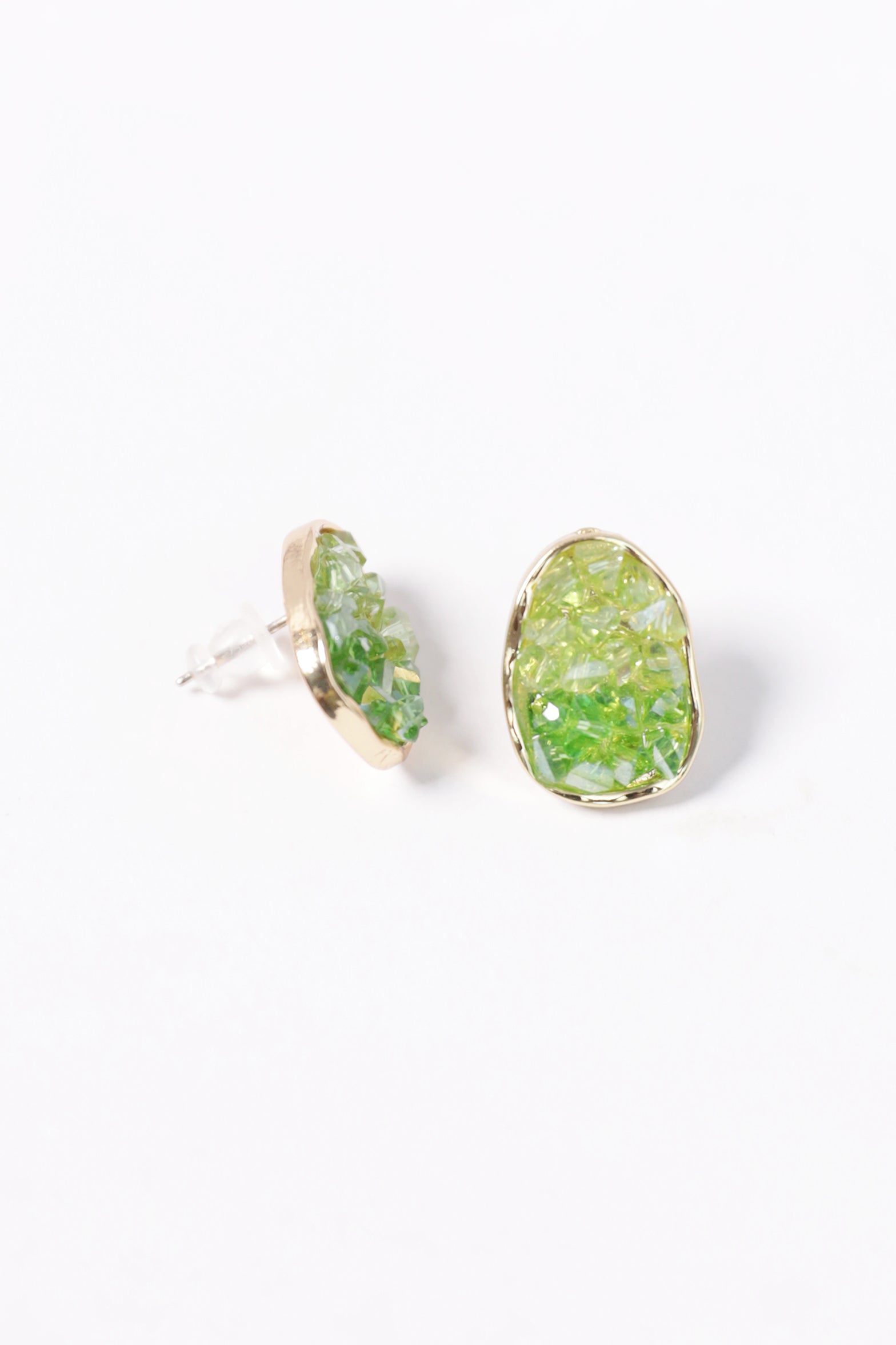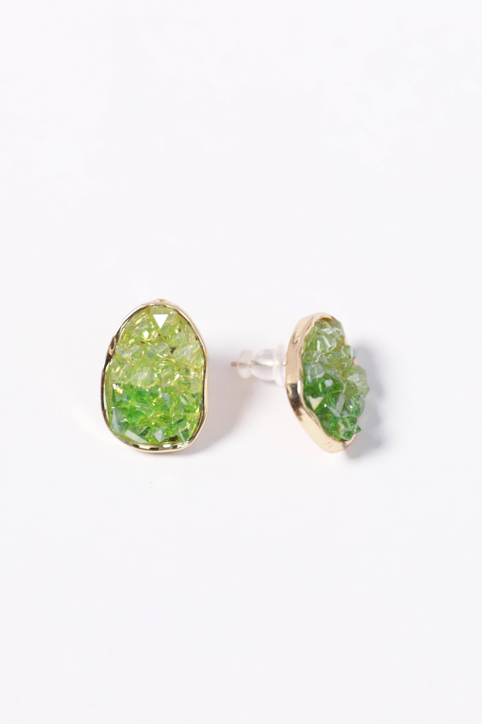 Stud earrings with ombré light-to-dark green crystals, set in a sleek gold base—simple with just enough edge.