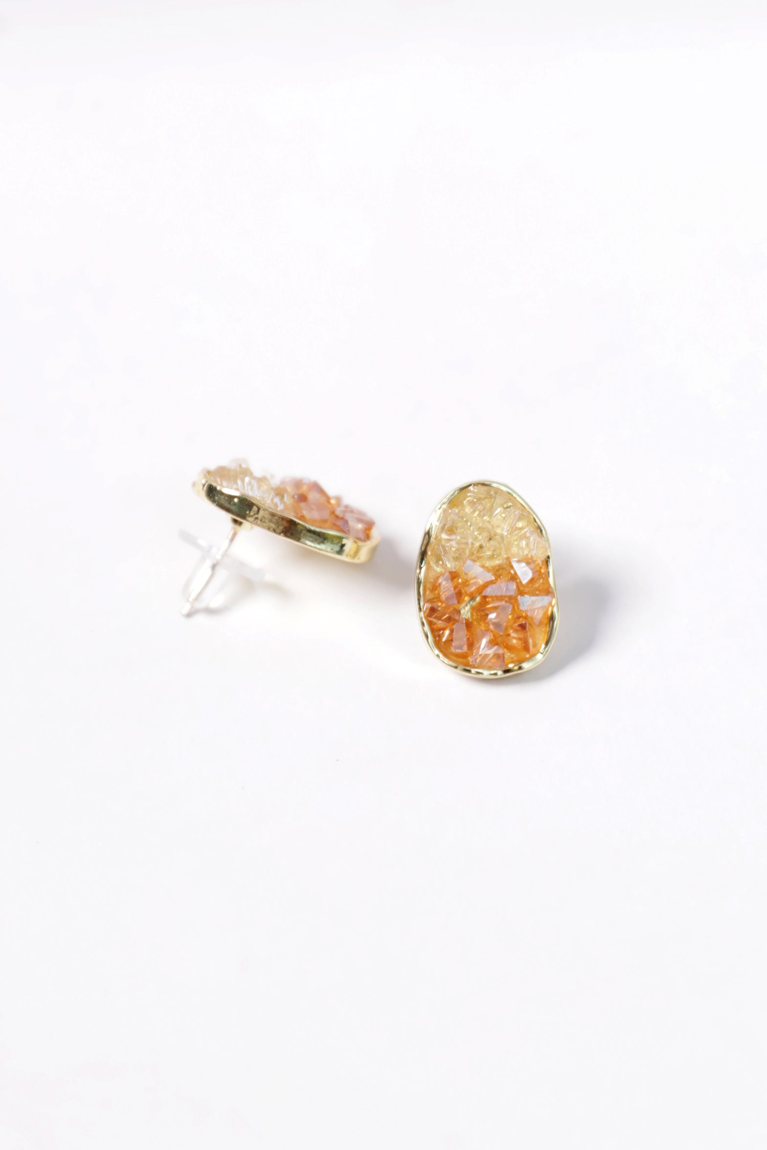 Stud earrings featuring ombré gold-to-orange crystals, set in a warm gold base for a subtle pop of color.