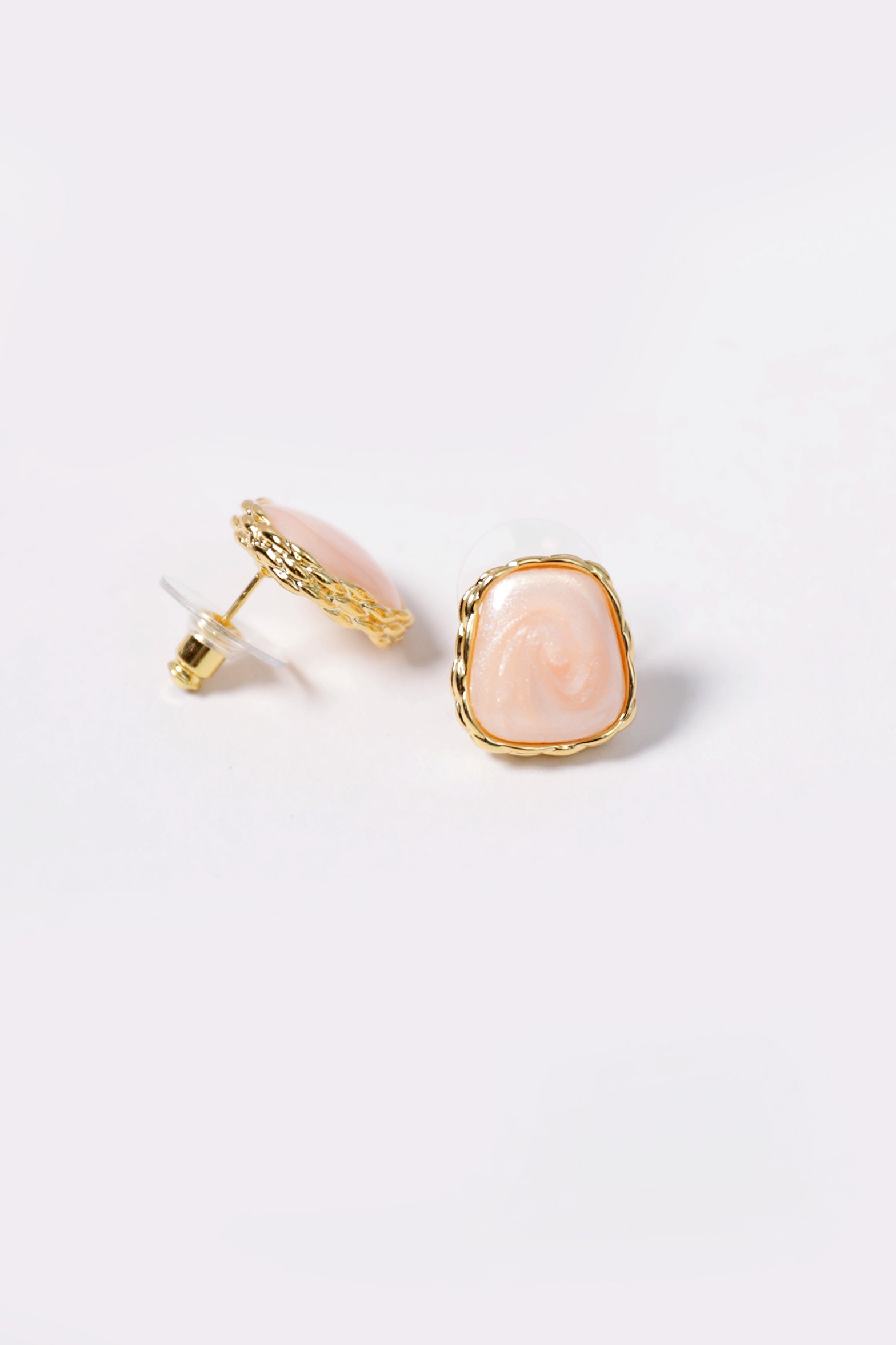 Stud earrings featuring a soft pink pearlescent inlay set in a warm gold base—elegant with just the right hint of shine.