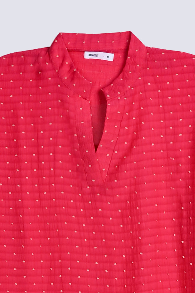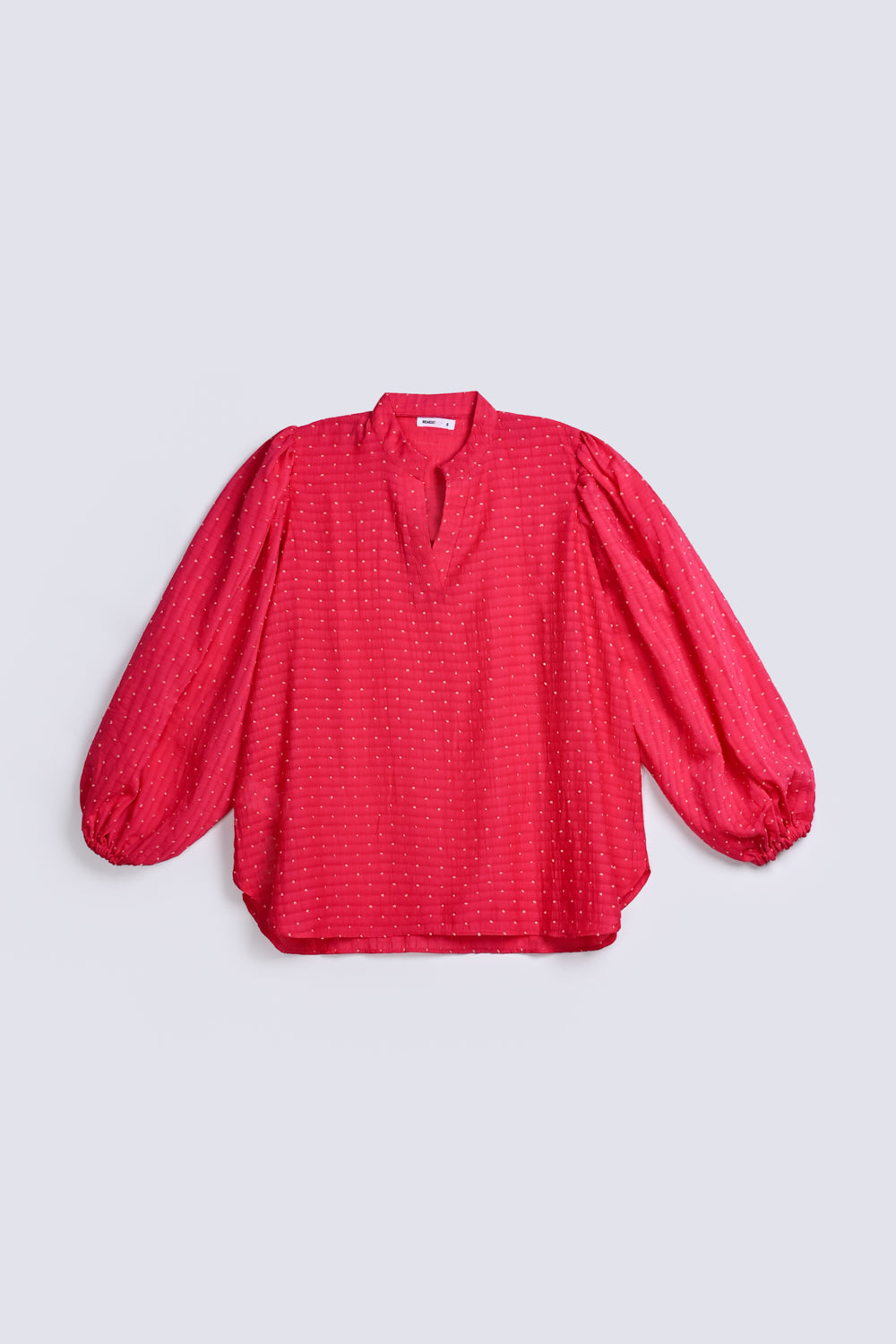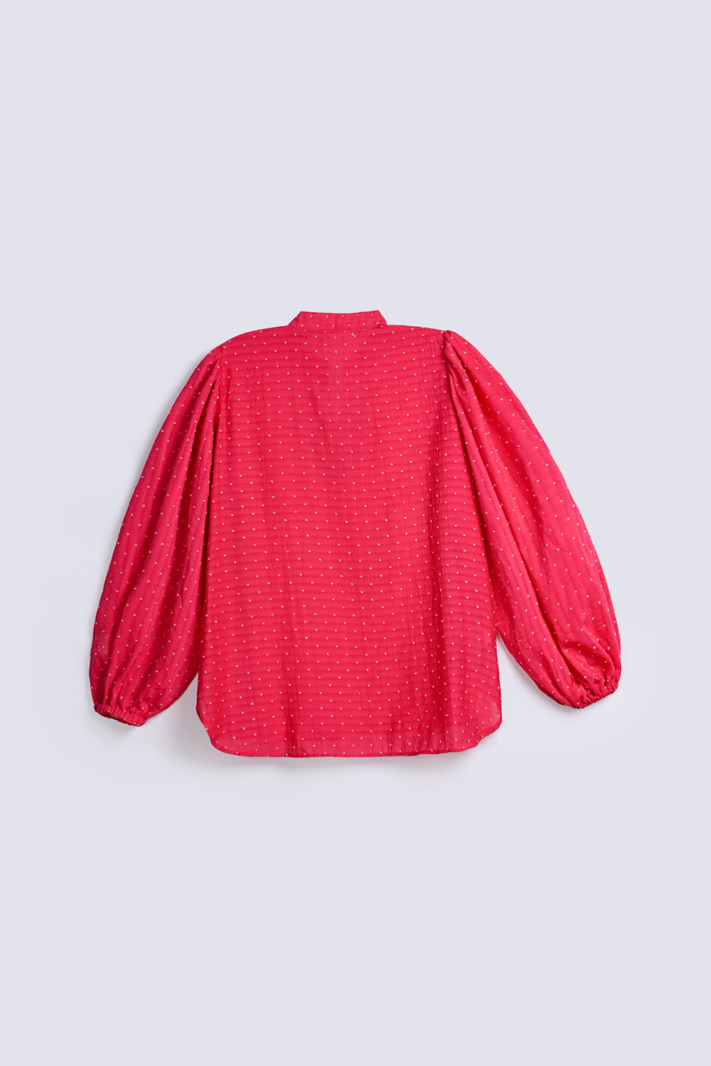 Vibrant pink top in a synthetic blend with a textured finish, styled with elasticated cuffs.