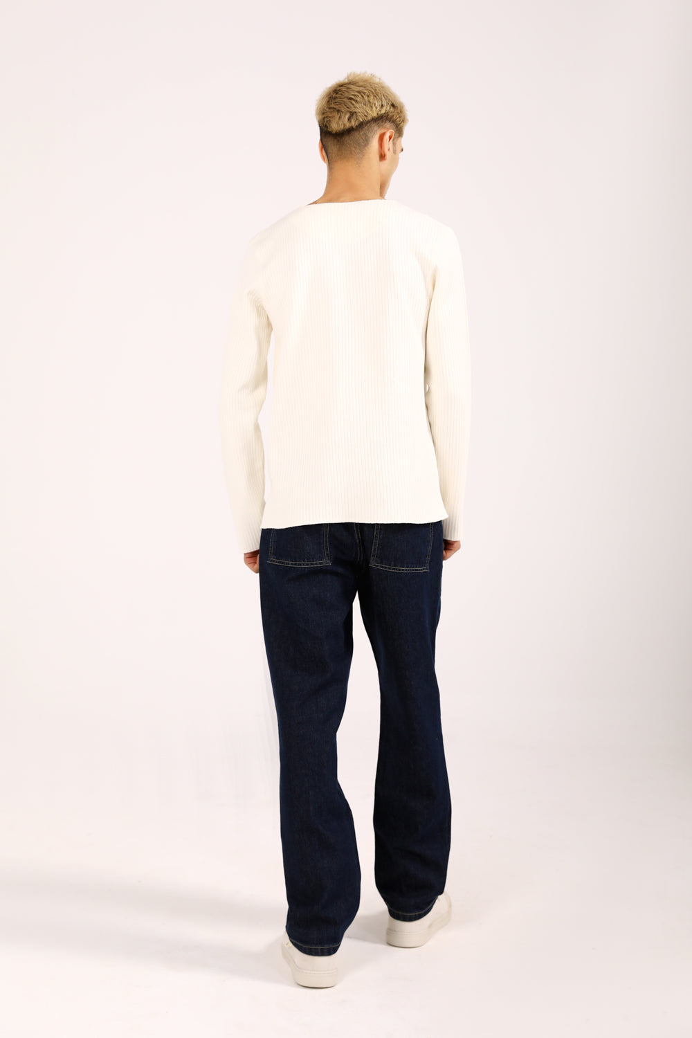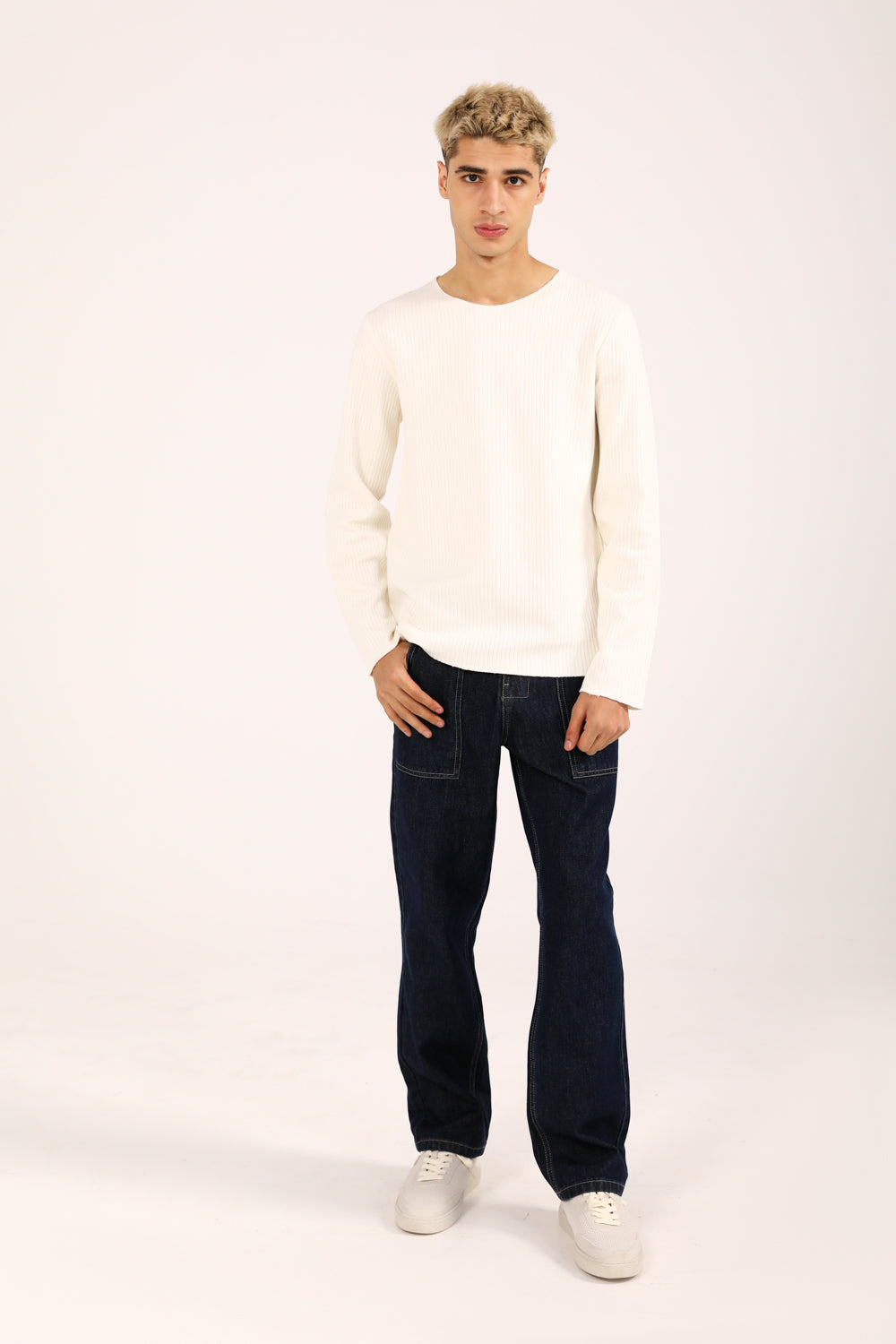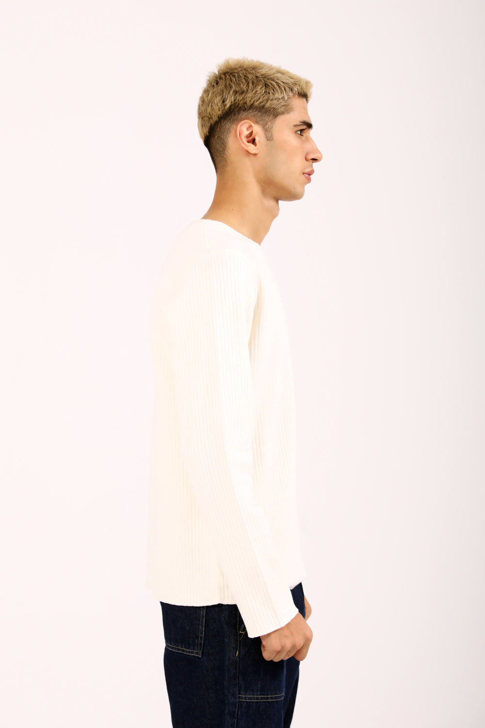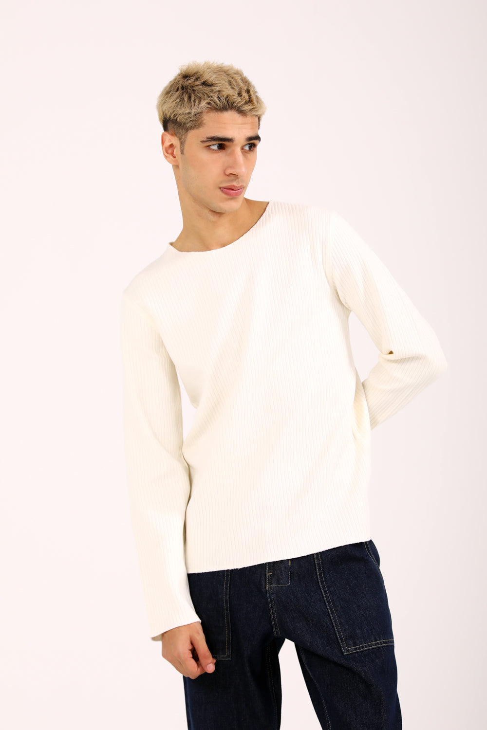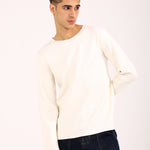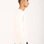 A full sleeve tee in off-white featuring a subtle textured surface that adds depth to a simple essential.