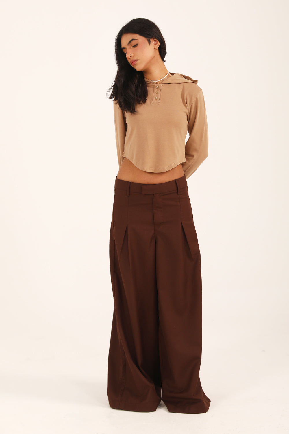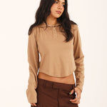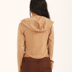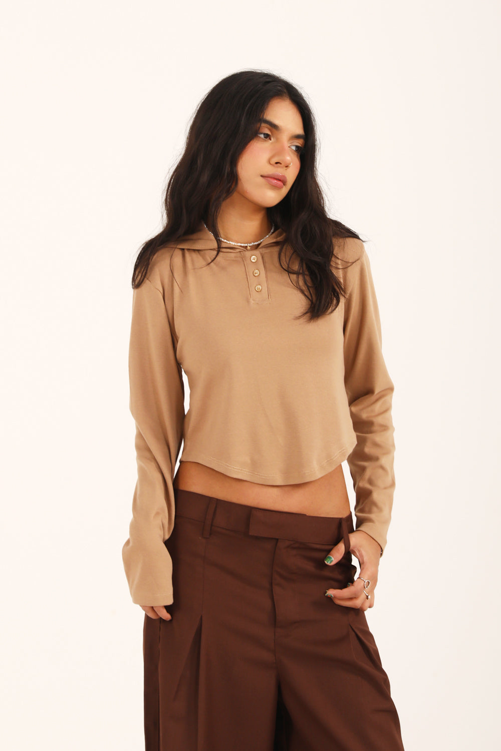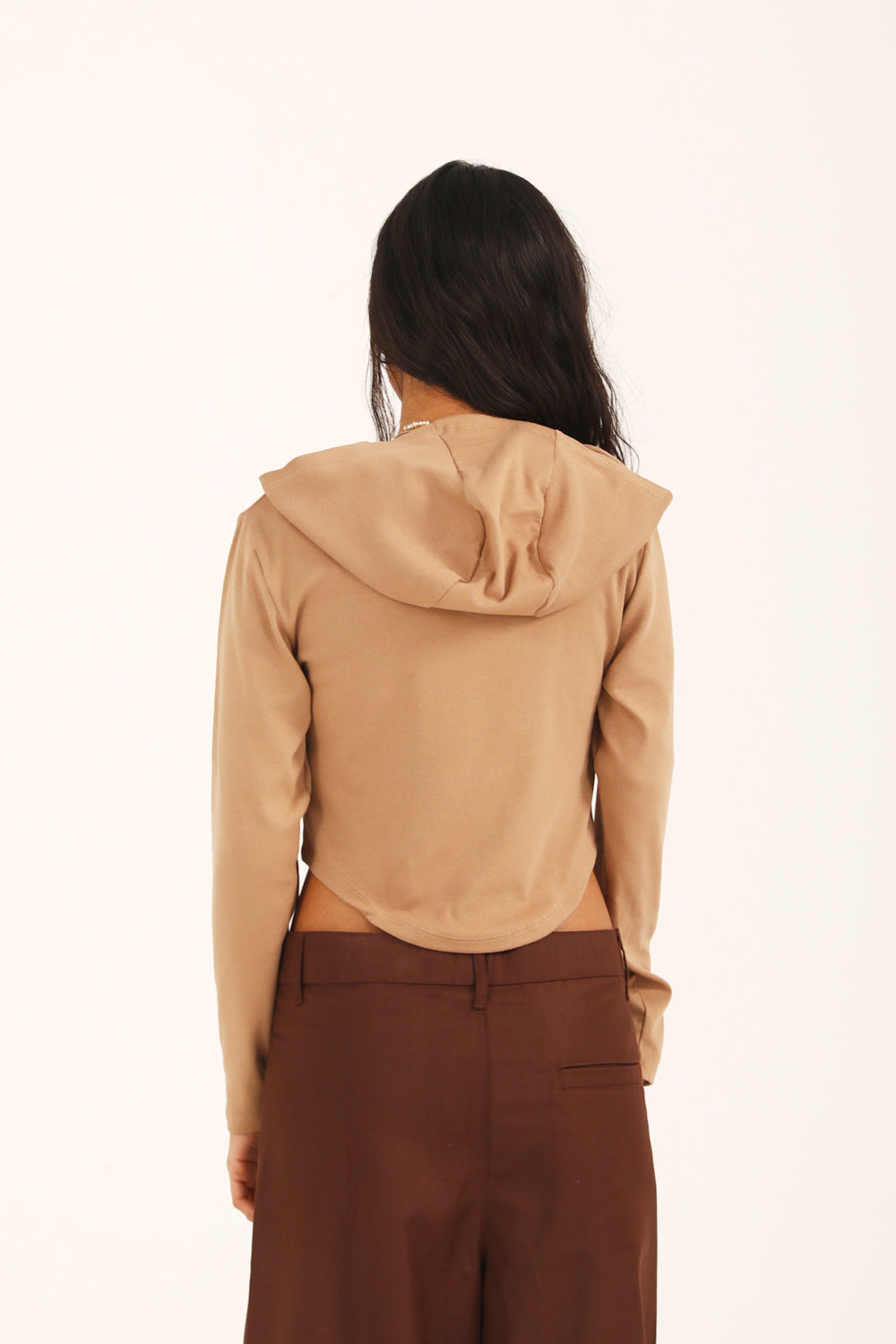Cropped silhouette finished with a rounded hem, full-length sleeves, and matching buttons that blend seamlessly into the design.