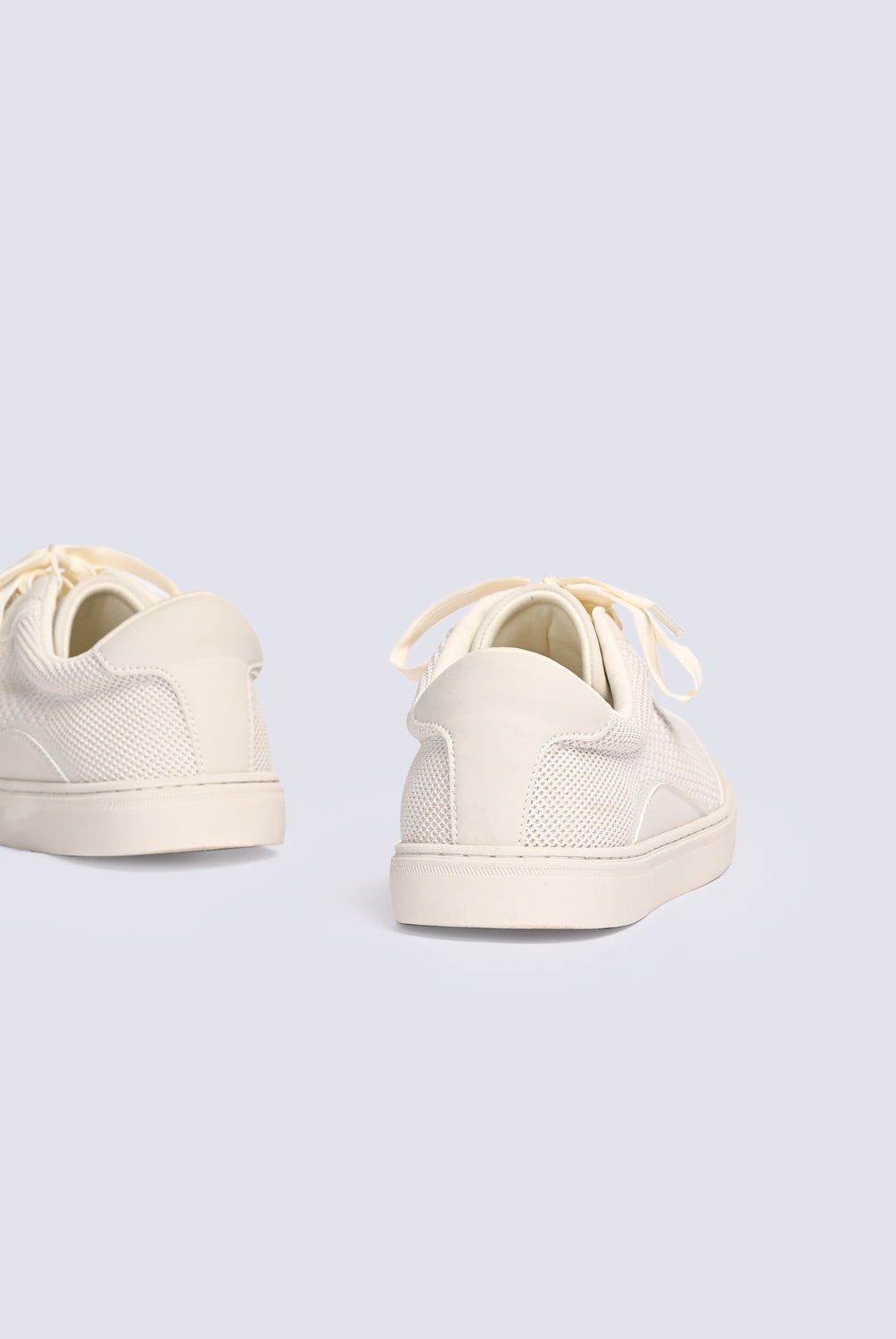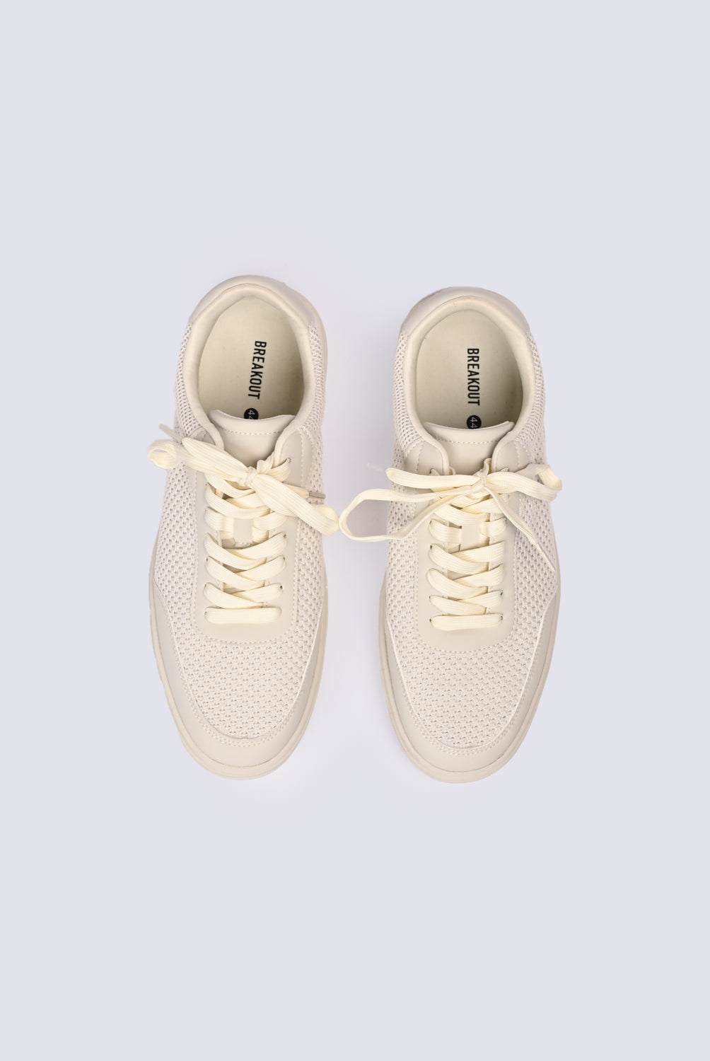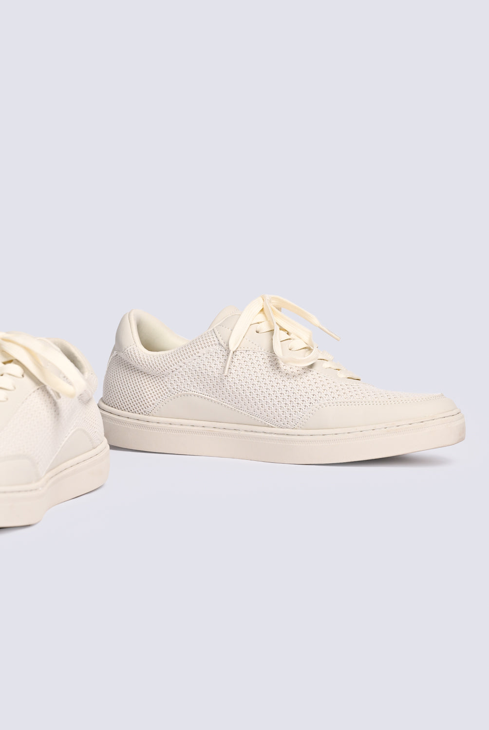 Chunky trainers in beige with white accents, designed with layered textures.