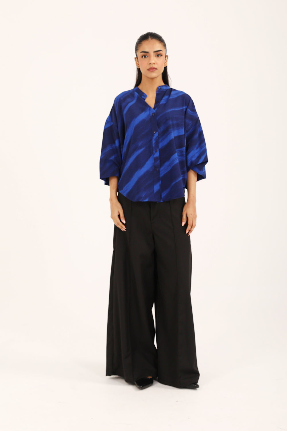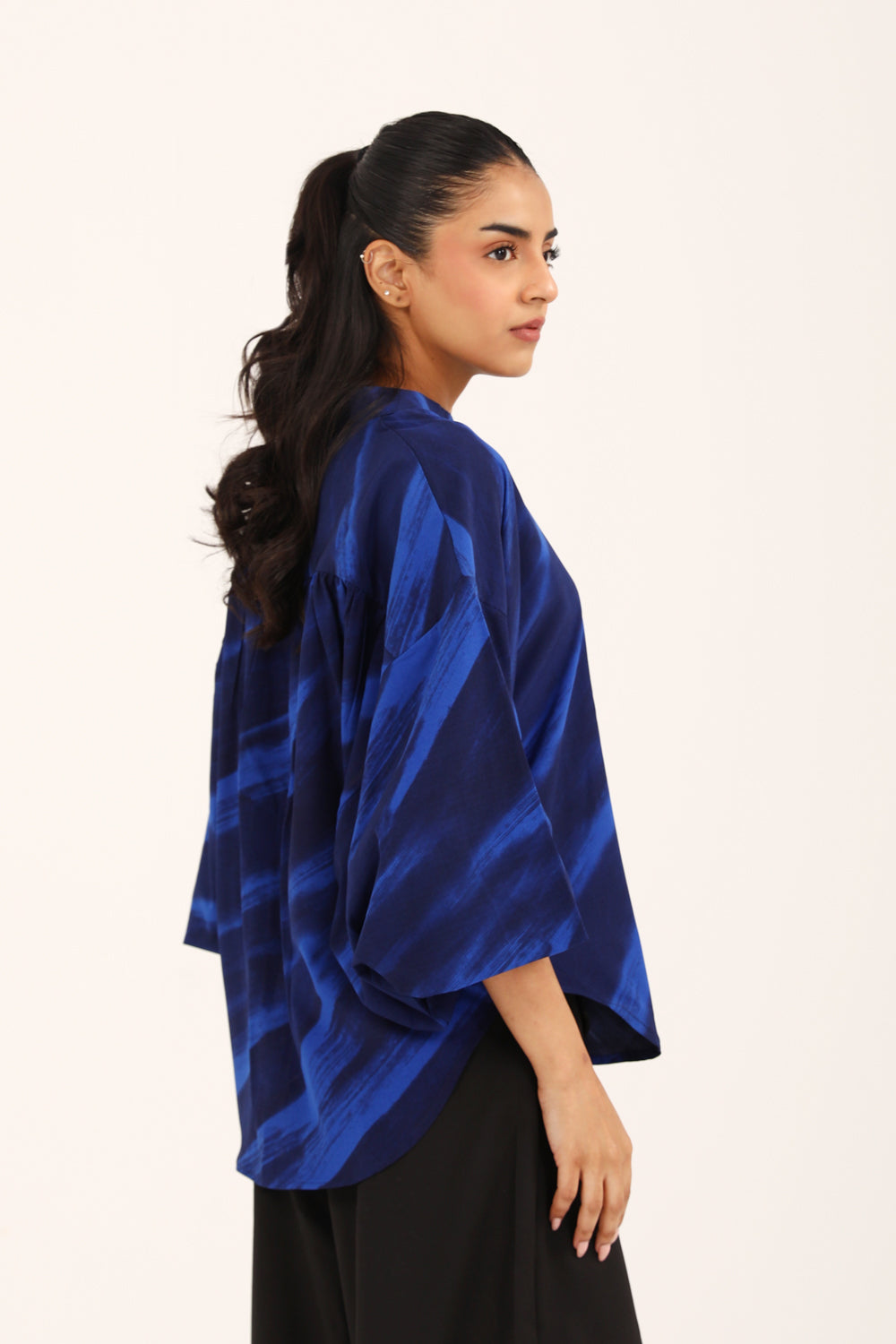 PRINTED TOP WITH BLOUSED SLEEVES