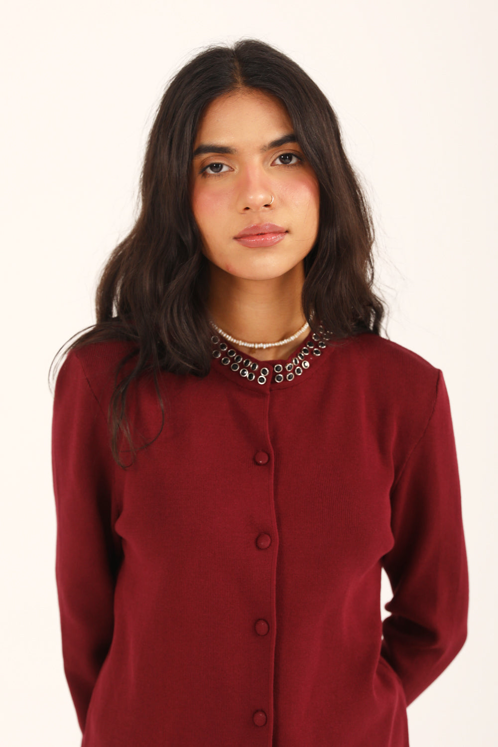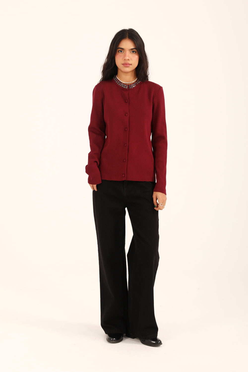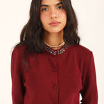 BUTTON DOWN EMBELLISHED SWEATER