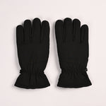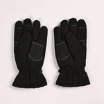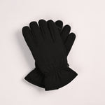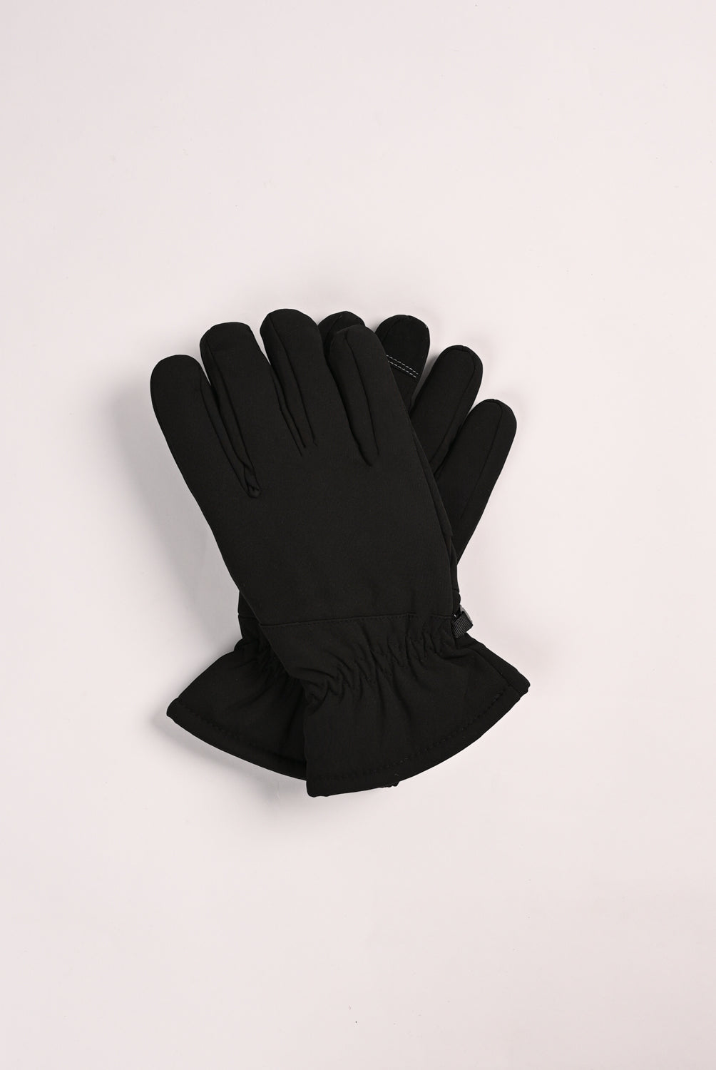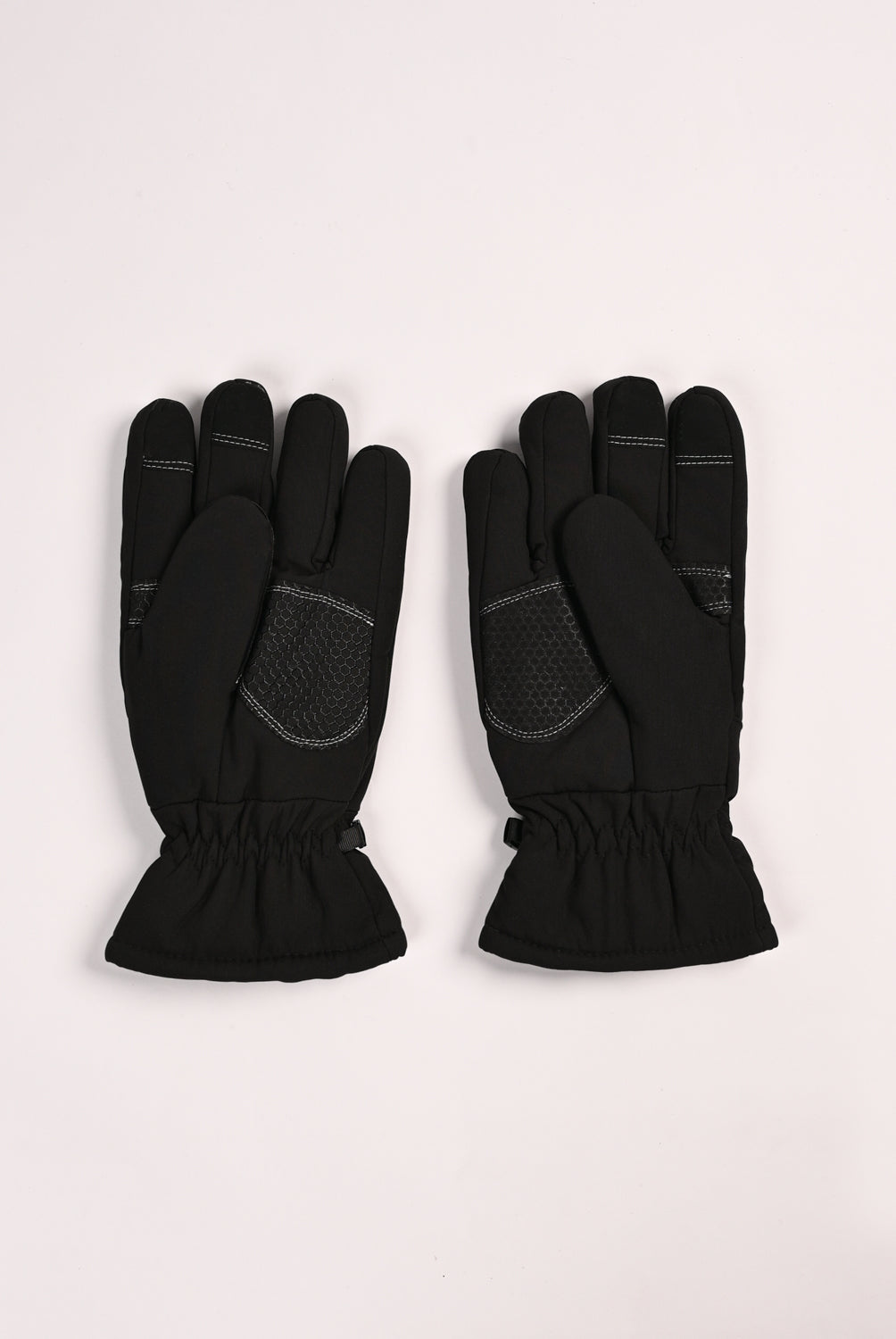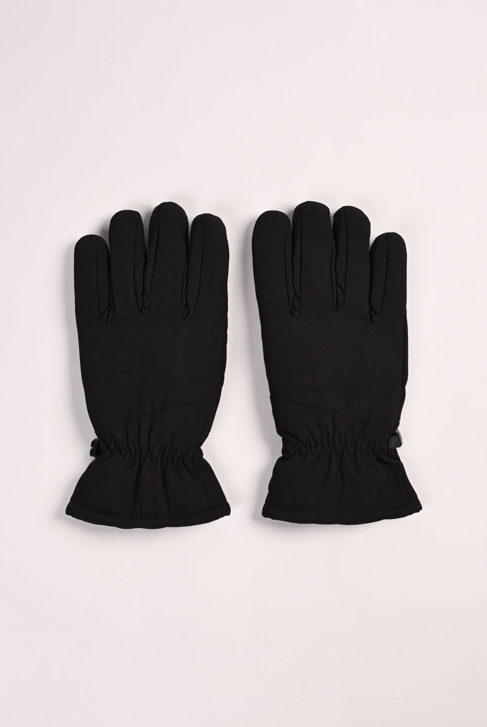 Black gloves with adjustable elasticated wrists for a secure and comfortable fit.