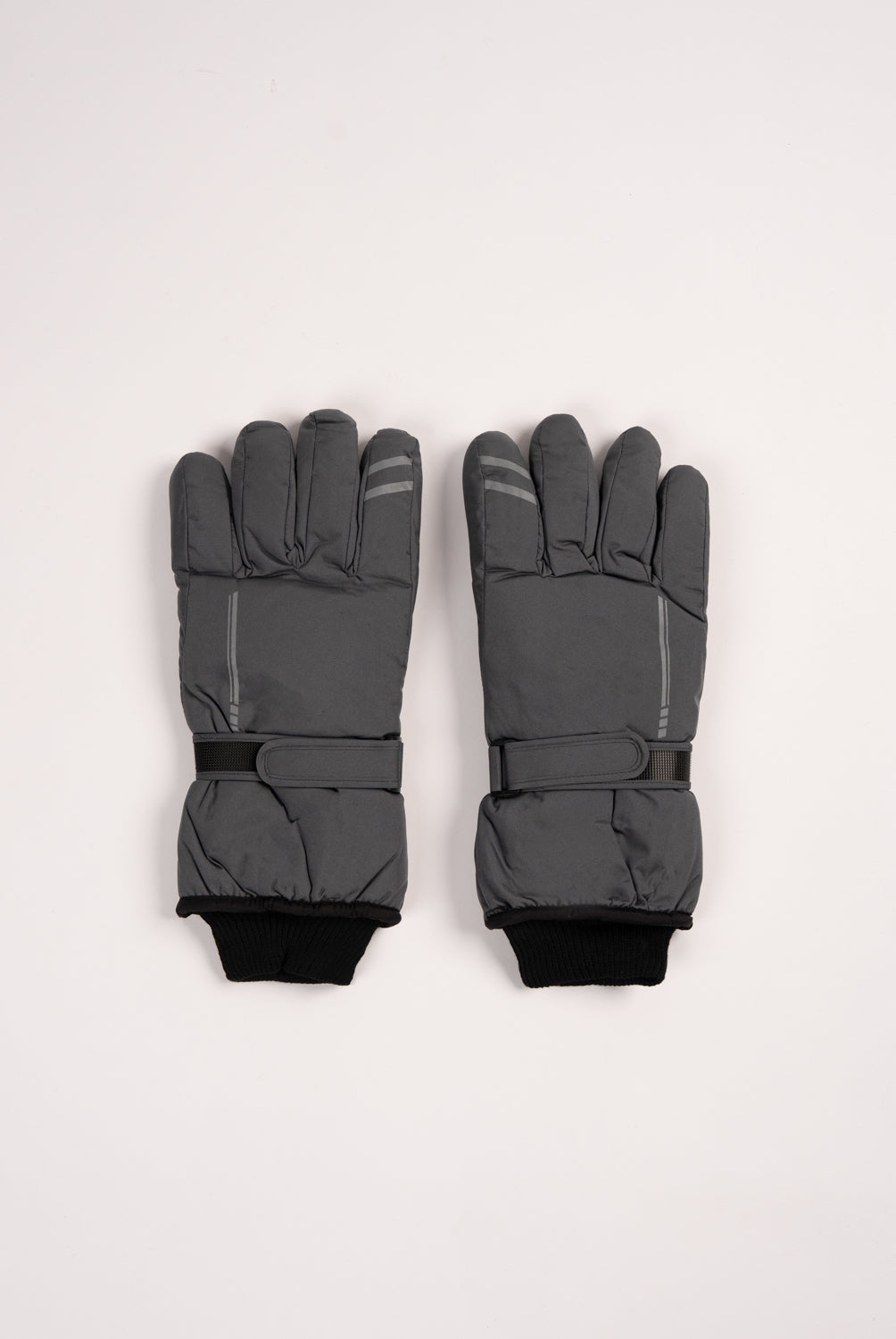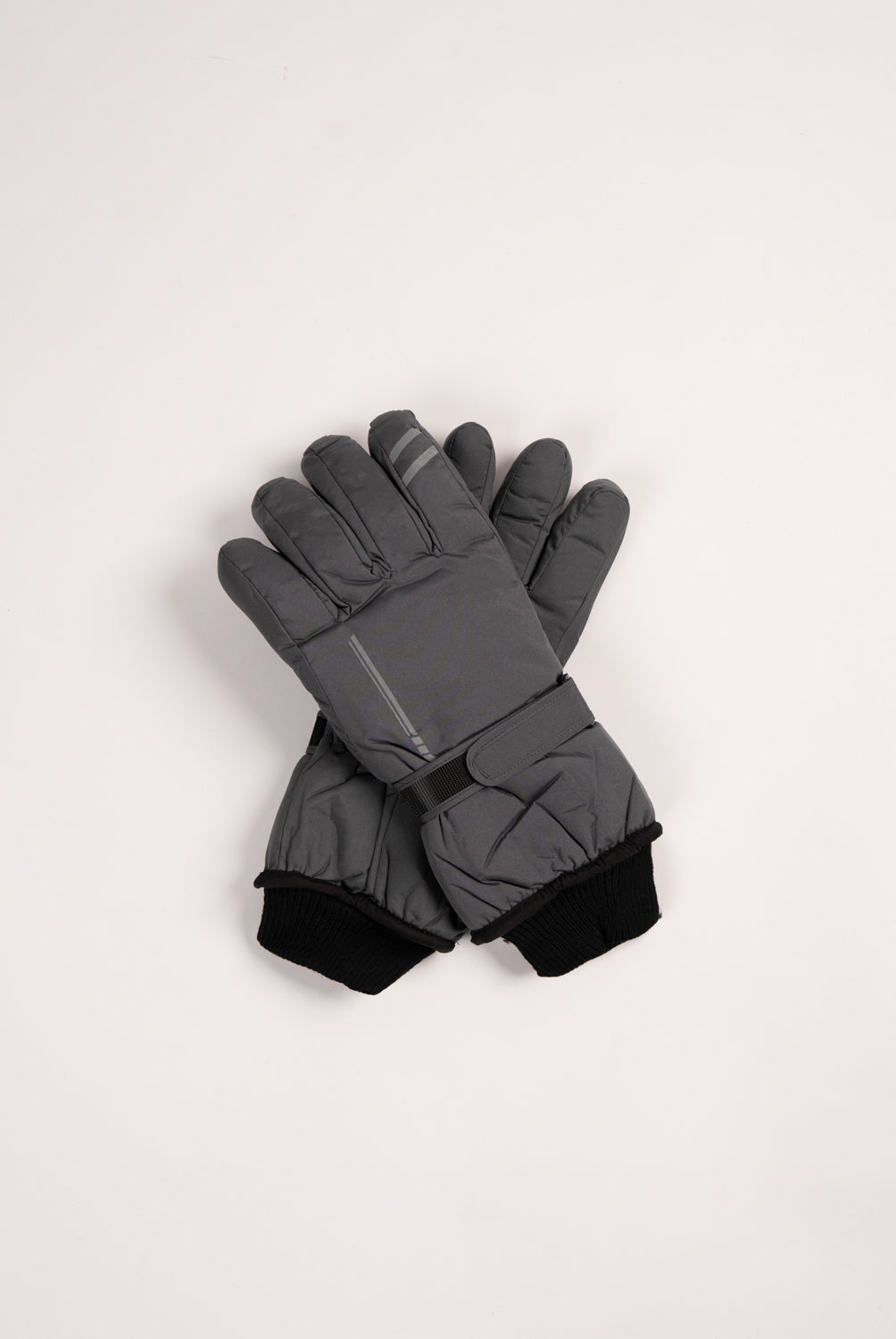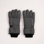 Grey gloves featuring a strap detail for added style and fit.