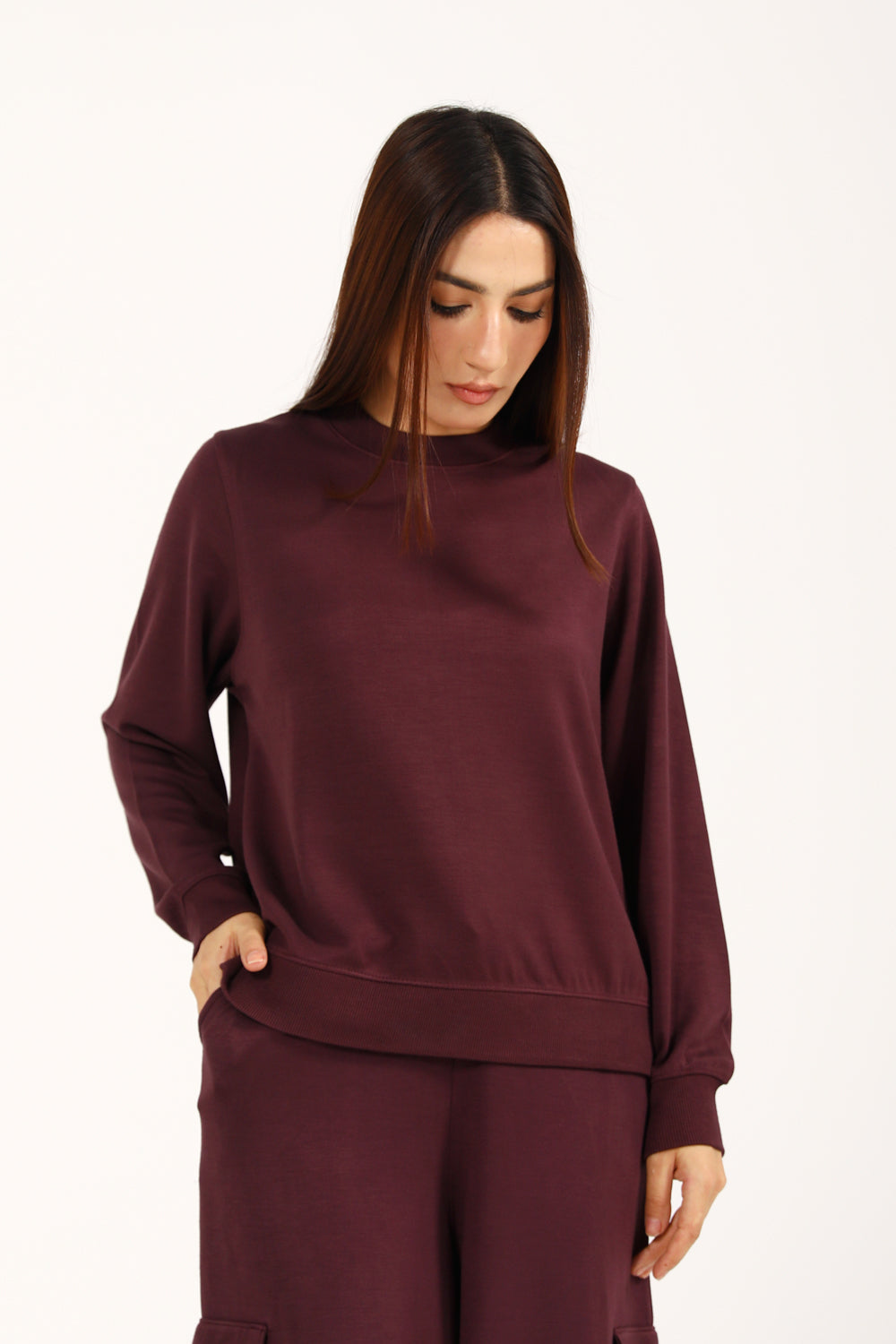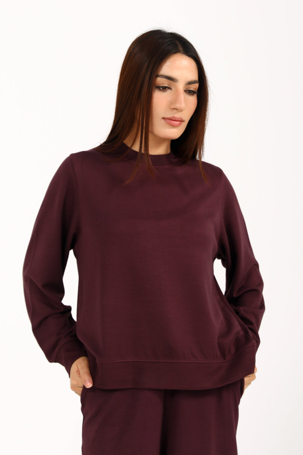 Plum warm luxe sweatshirt with a regular fit and a plain design.