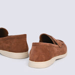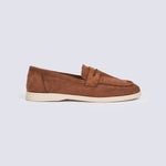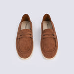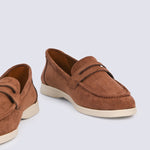 Crafted from faux suede in an earthy olive tone, these loafers are set on a contrasting beige sole.