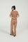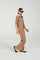 Semi fit Camel ribbed polo top with a contrast collar, soft V-neckline and, cropped silhouette, delivering sporty retro energy.