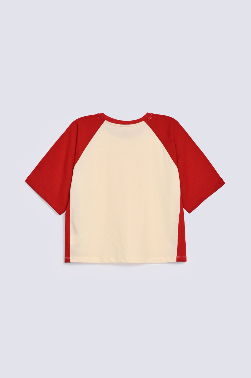 Cropped comfy-fit raglan T-shirt in soft cotton with contrast sleeves.