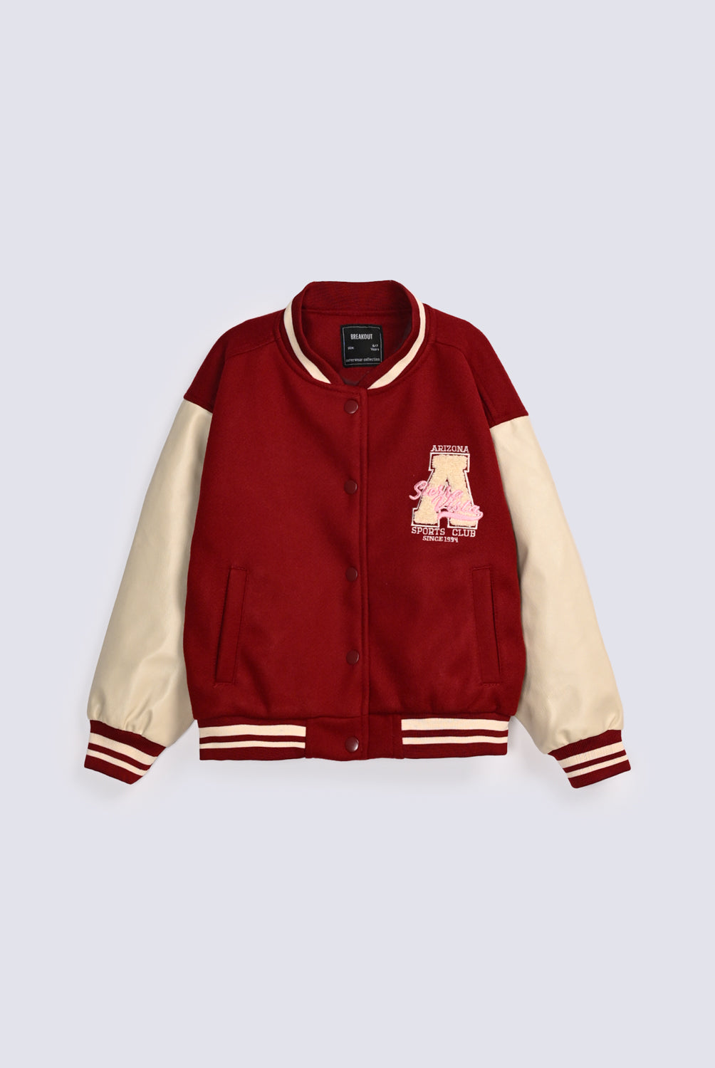 GIRLS CONTRAST SLEEVE VARSITY JACKET