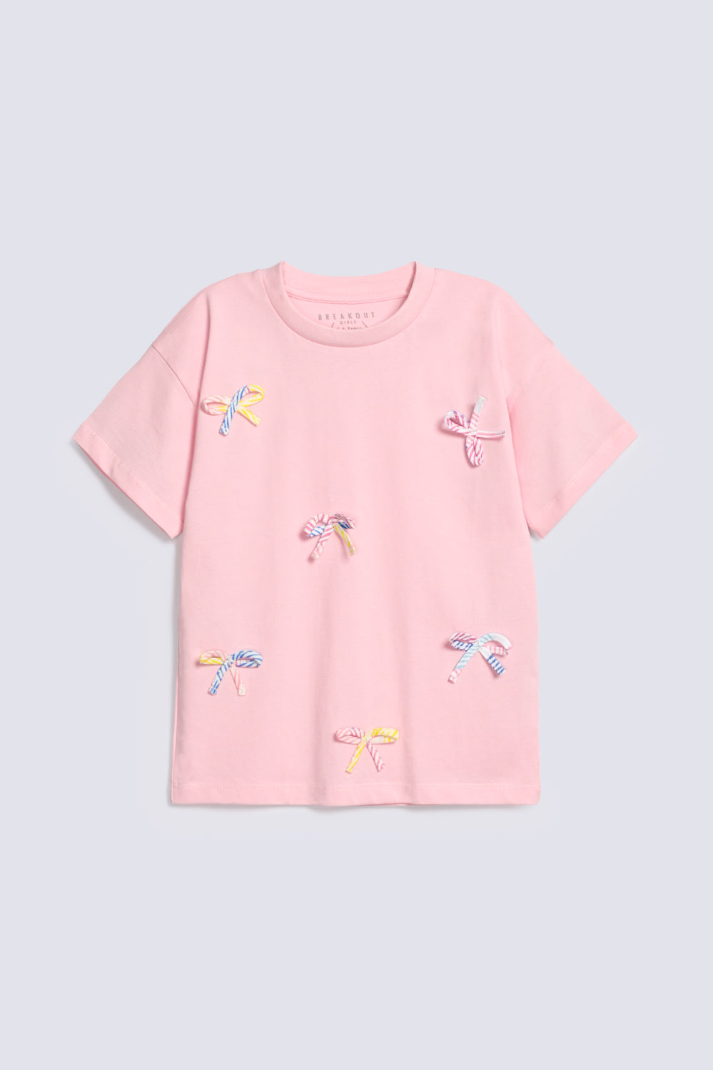 Powder Pink T-shirt with playful bow appliqués.