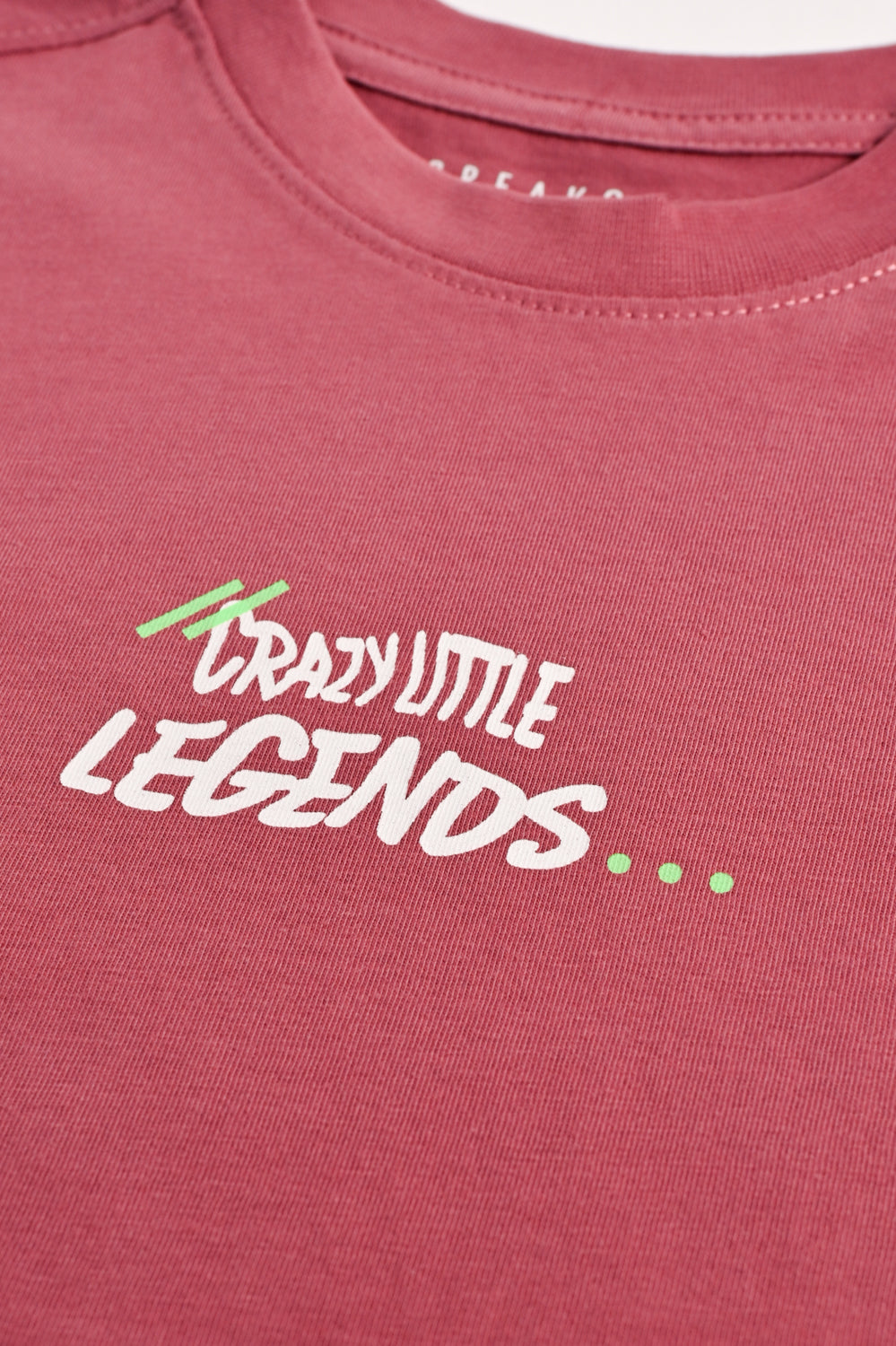 Washed Red T-shirt with subtle “Crazy Little Legends” print.