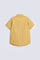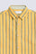 A cheerful striped shirt in mustard with green lines and light beige buttons.